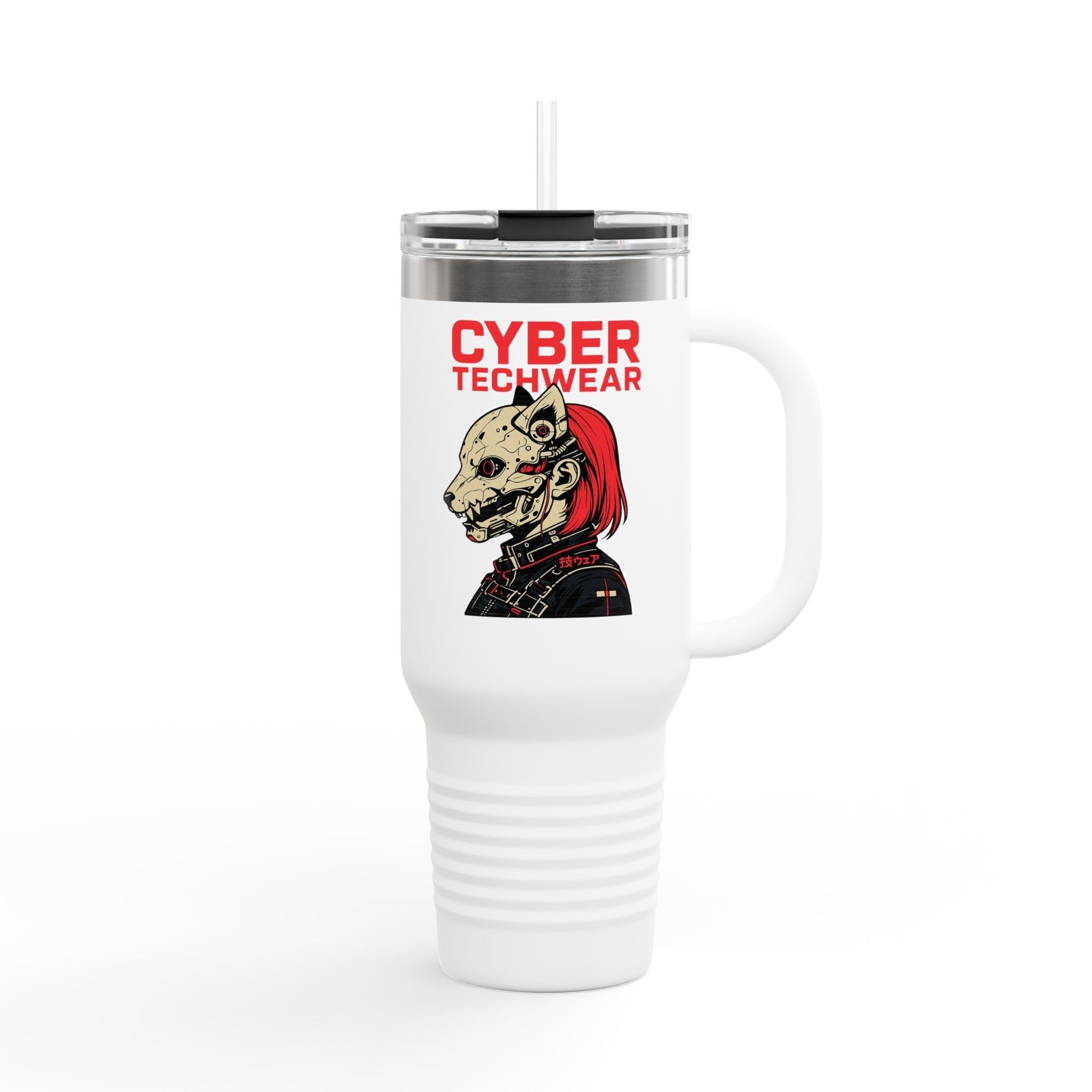 The Cyber Mask 40 oz Tumbler isn’t just about function—it flexes with a bold, techwear aesthetic that turns heads while keeping your drinks at the perfect temperature.
