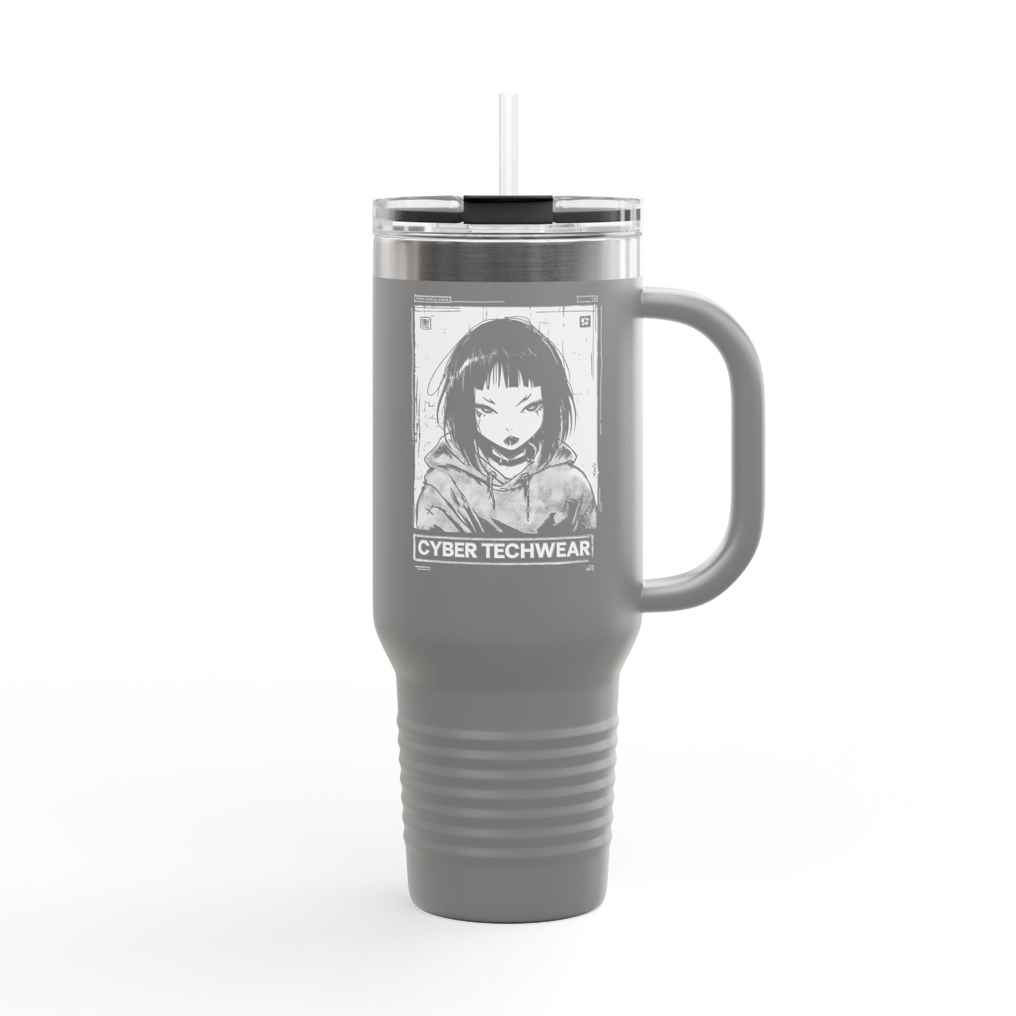 Designed to handle both hot and cold drinks for hours, the Cyber Techwear Anime - 40 oz Tumbler brings together performance, style, and convenience. Whether you're commuting, hiking, or just grinding through the workday, this tumbler keeps you fueled and looking sharp.
