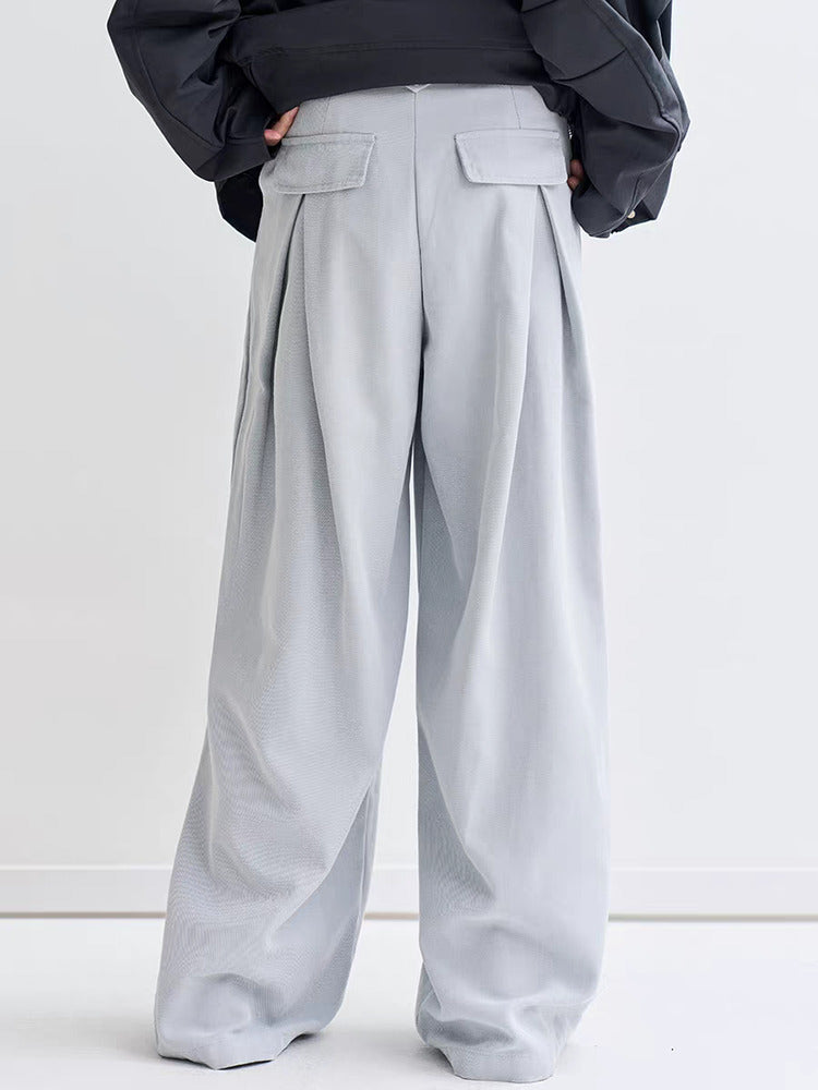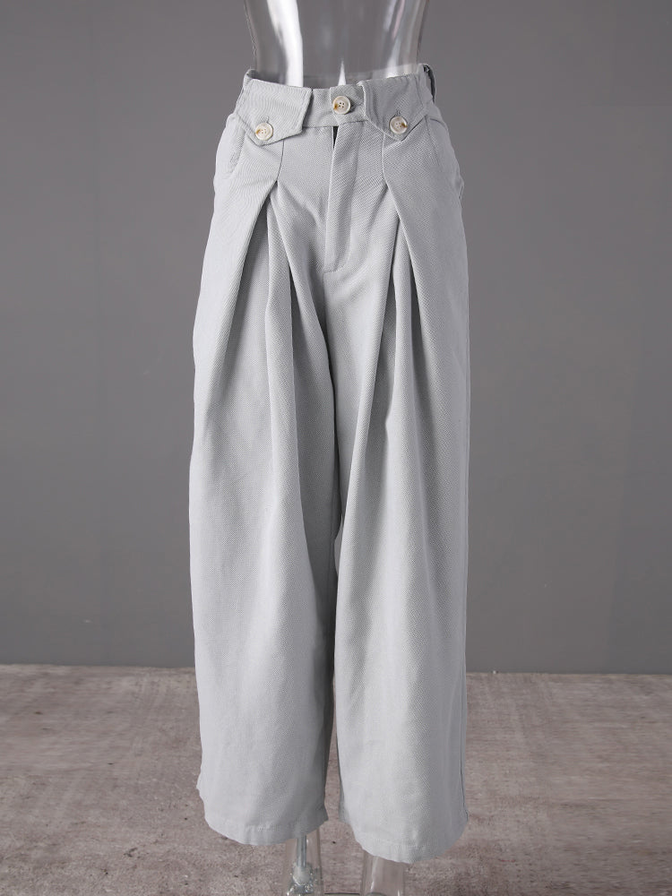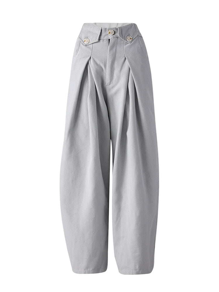 The high-waisted design flatters your silhouette while the wide pleated legs create graceful volume and flow. Every movement feels free, every step radiates confidence. Their light grey hue adds a clean, versatile charm that complements any season or mood.