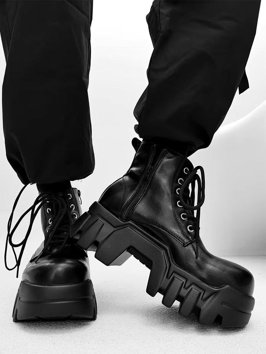 These High Heels 8cm Men Boots Black are made for those who don’t follow trends — they build them. Step into a bold silhouette that gives you that extra edge — literally and stylistically. ⚡ With an elevated 8cm high heel, every step commands attention. Ideal for techwear aesthetics, street fashion, and confident daily wear, this boot is where elevation meets dominance.