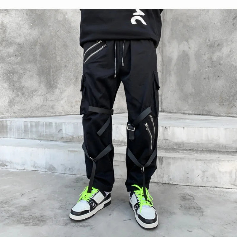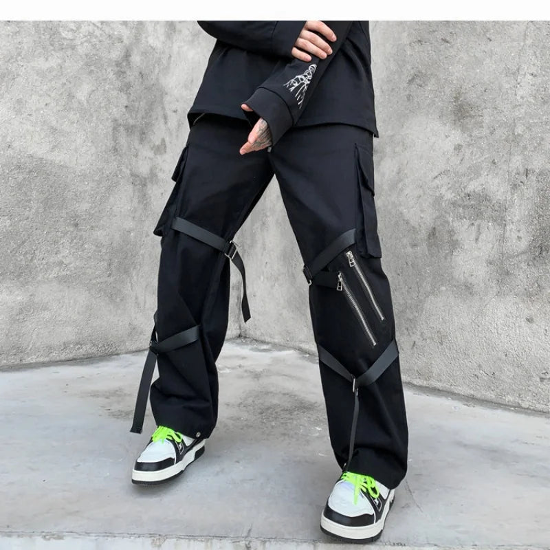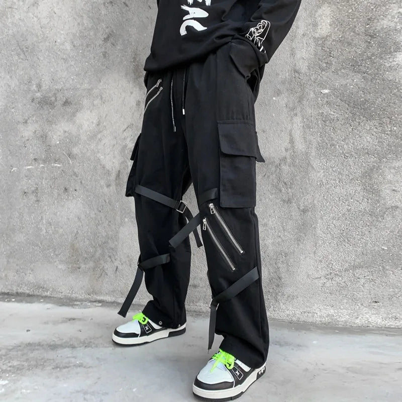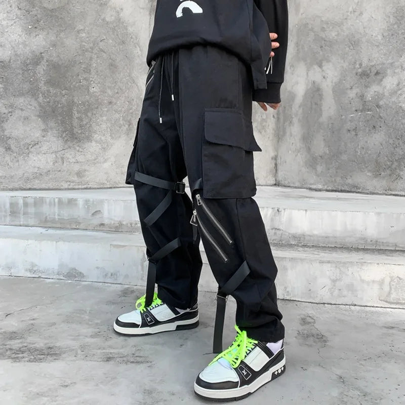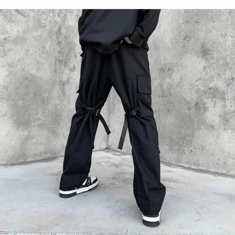 These multi-pocket pants offer versatility, comfort, and a fashion-forward edge. The ribbon accents add a fun, fresh twist to a classic black pant design, allowing you to express your unique style effortlessly. Crafted with care, these pants are the perfect blend of utility and modern elegance.