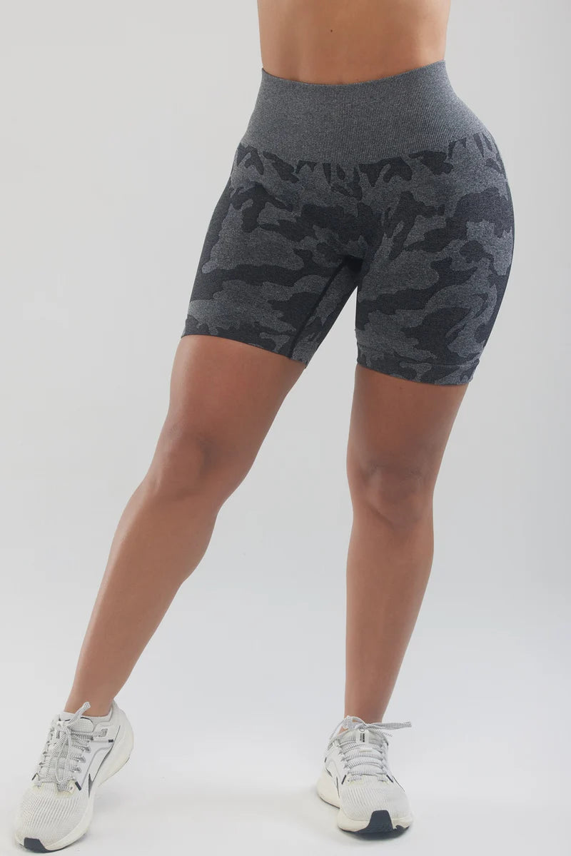 Feel the perfect blend of style and support with the Camo Grey Women Booty Shorts, tailored to contour your body and enhance your curves. The high-waist fit offers excellent tummy control, while the sleek grey camo pattern brings a modern edge to your workout wardrobe. 🌟