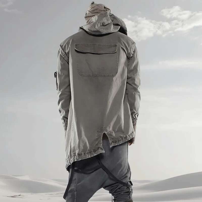 Push the limits of street fashion with the Asymmetric Deconstruction Cyberpunk Jacket, designed for those who dare to challenge convention. This piece embodies avant-garde design and urban rebellion, combining bold geometry with functional precision.