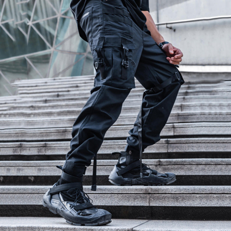 Designed for the bold, the Dark Multi Pockets Cyberpunk Pants fuse high-tech functionality with an edgy, futuristic aesthetic. Whether you're navigating the city or making a statement, these pants keep you ready for anything.
