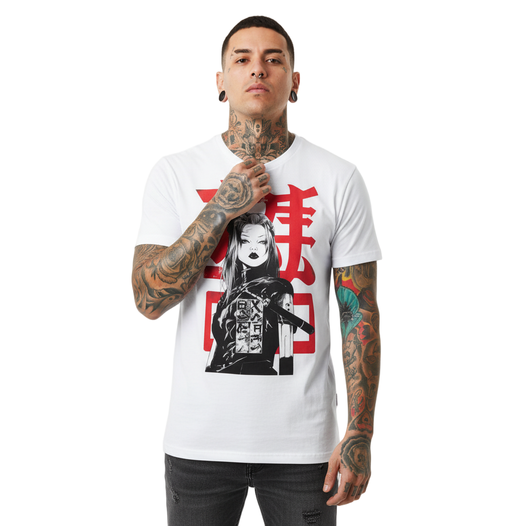 Unleash your inner rebel with the Cyberpunk Shirt Red kanji. This exclusive white tee boasts a captivating design featuring a fierce cyberpunk warrior atop bold red kanji characters. Make a statement with this unique piece of wearable art and become the talk of the town.