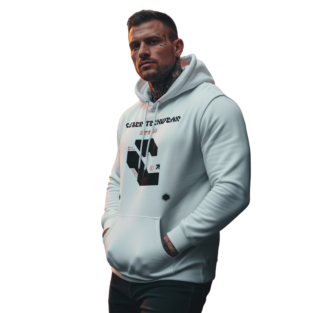 Looking for a hoodie that combines comfort and style in a unique way? Look no further than our White Cyberpunk Hoodie. This classic unisex hoodie features the iconic Cybertechwear logo on the front, and a striking black and red design on the back, making it a true standout piece.