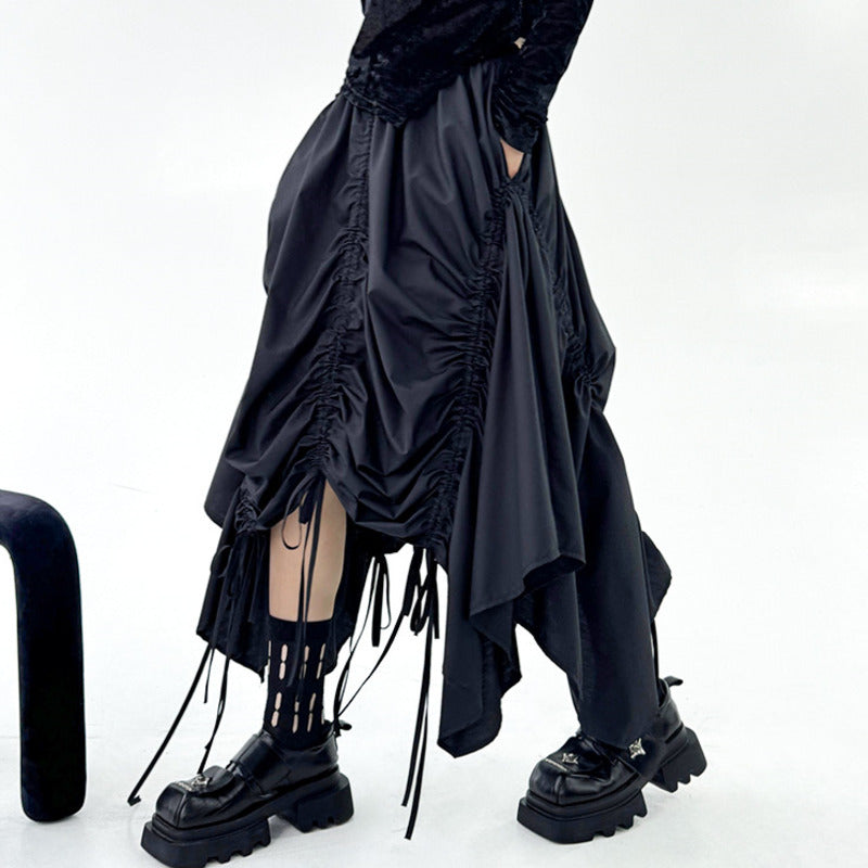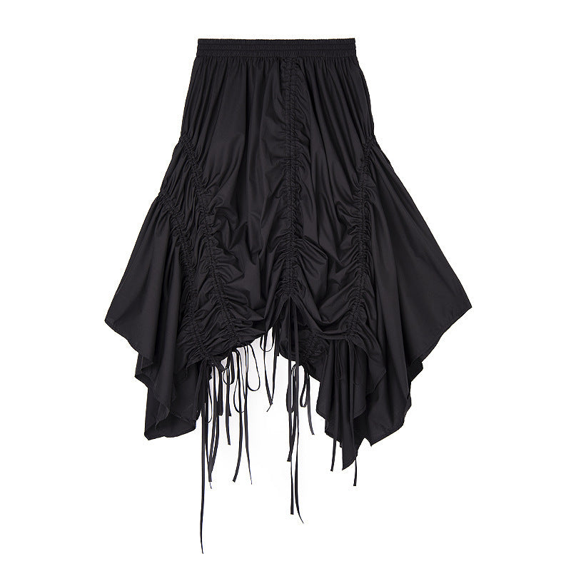 The adjustable ruched drawstrings allow you to sculpt the shape to your mood, giving you full control over volume and attitude. This means one skirt, multiple looks — from softly mysterious to boldly dark.