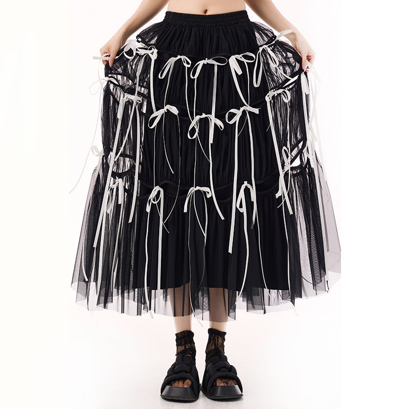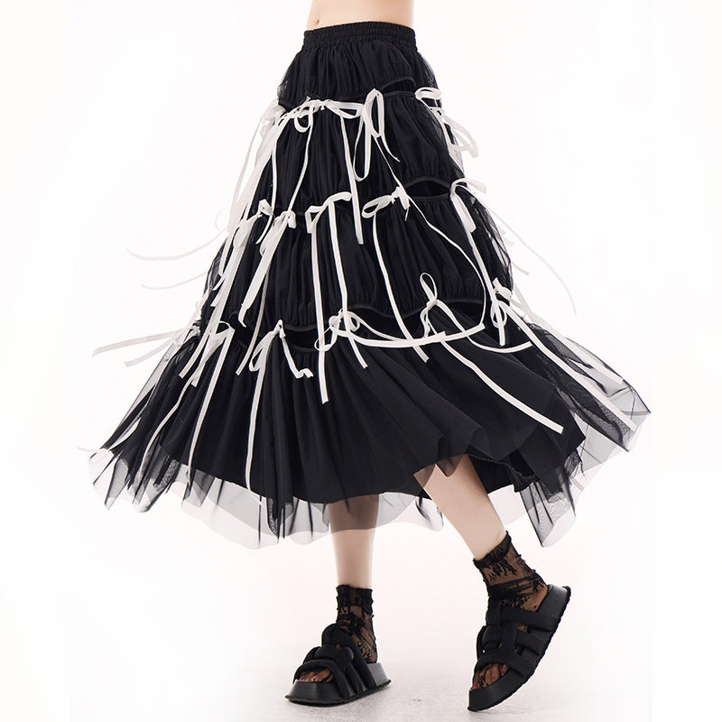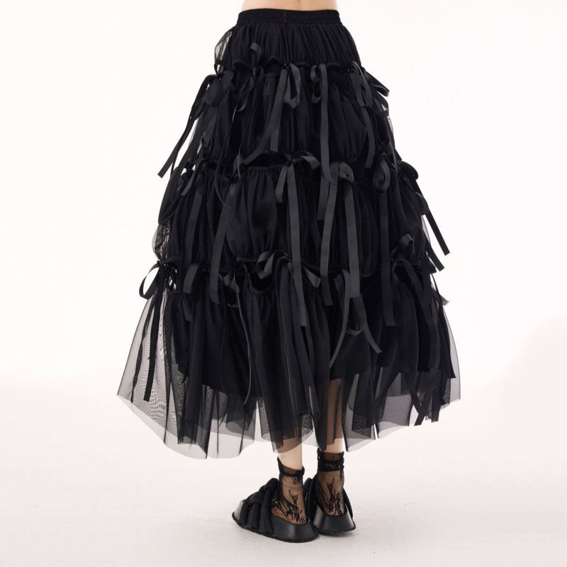Crafted in deep black tones, this skirt plays with volume and transparency to create a dramatic yet wearable aesthetic. The midi length flatters the legs while keeping a mysterious balance between softness and rebellion.