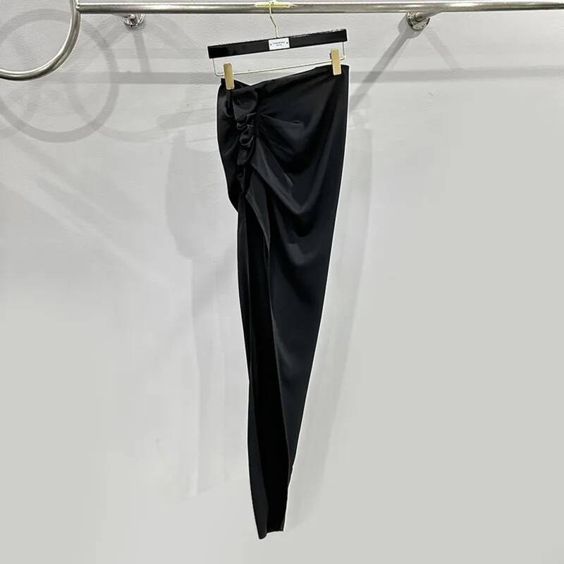 The high slit design introduces controlled sensuality, allowing freedom of movement without sacrificing elegance. It’s a piece that feels powerful, intentional, and effortlessly wearable from day to night.