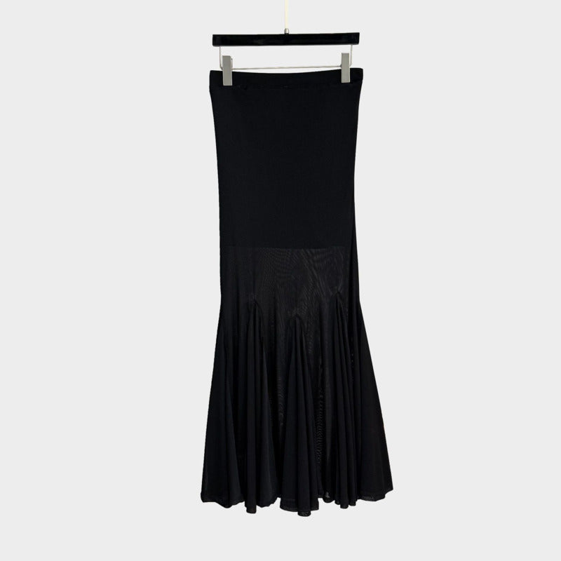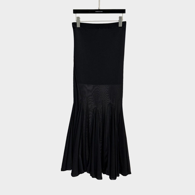 Crafted for comfort without sacrificing edge, the elastic waist structure offers a secure yet flexible fit that adapts beautifully to your body. The lightweight mesh layering ensures breathability, making it perfect for long nights, events, or statement daily wear.