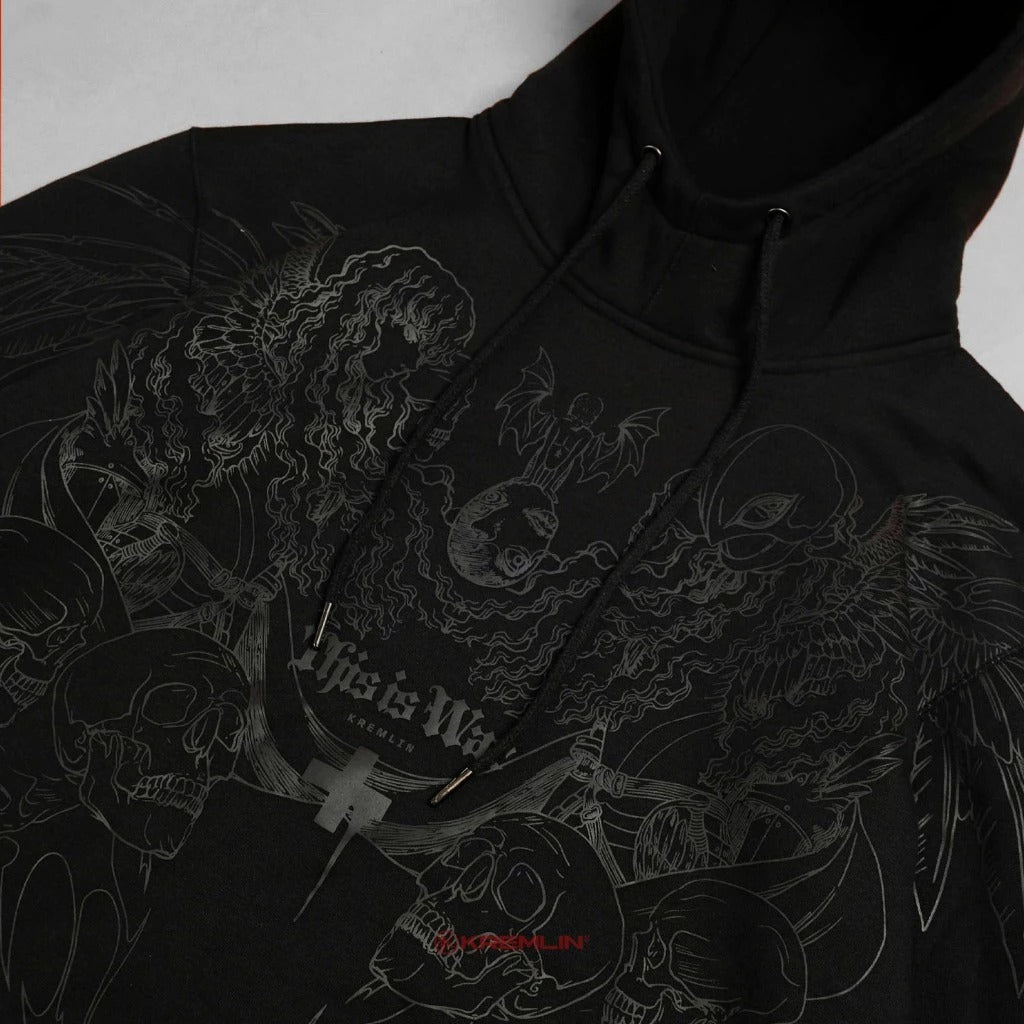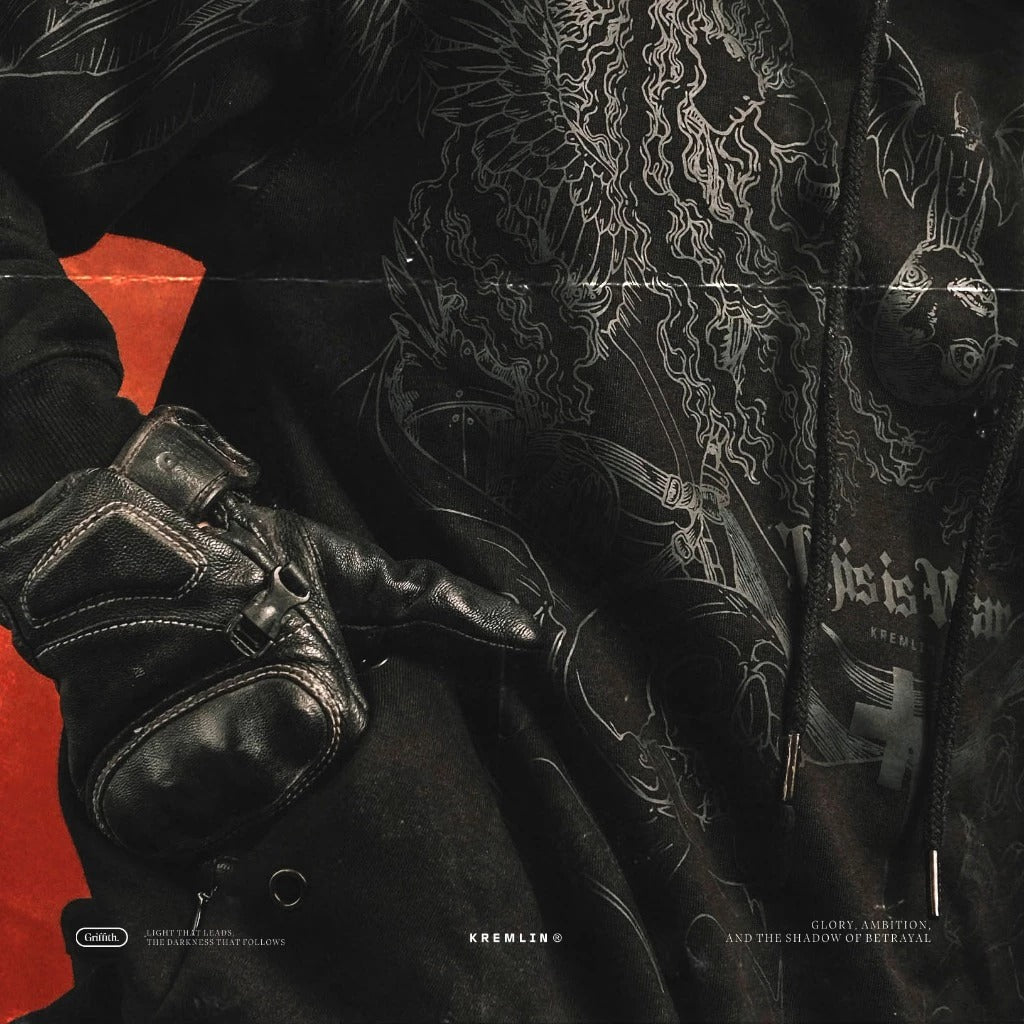 The striking black on black graphic with a unique medieval design creates a mysterious yet modern vibe, perfect for urban streetwear or futuristic layering. Every detail is backed by quality stitching and expert print techniques. 🔥