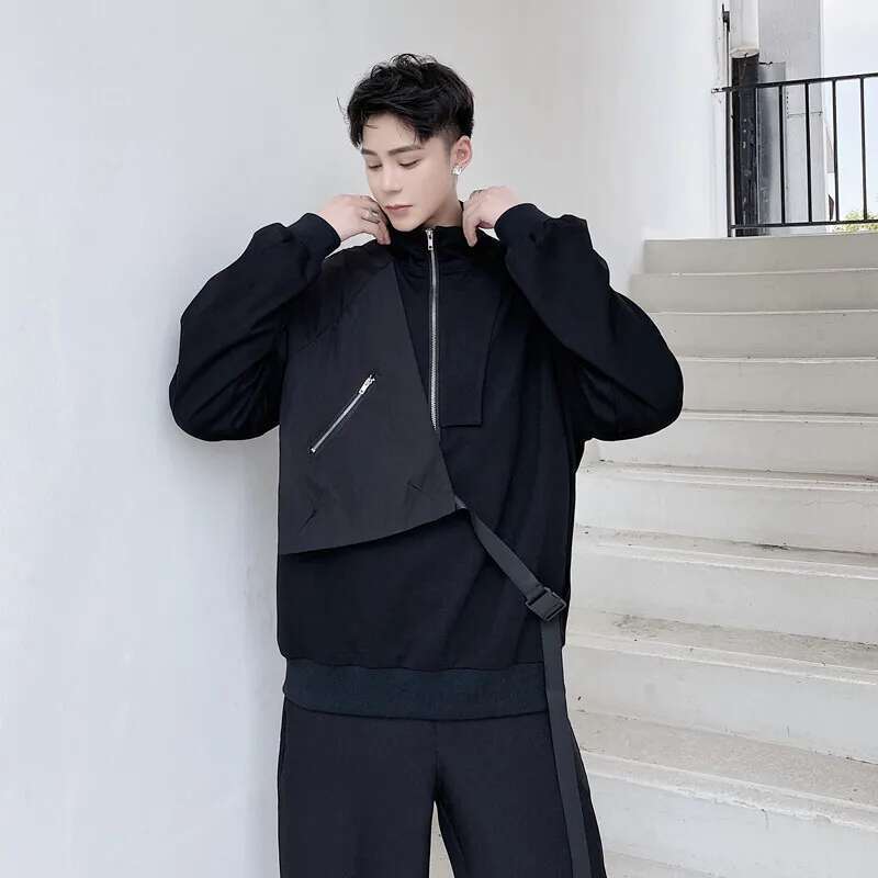 The design is rooted in functional aesthetics. Note the high-neck collar with a practical half-zip closure, allowing you to adjust your look and ventilation on the fly. The signature overlay includes a zippered pocket for small essentials, merging high fashion with street utility.