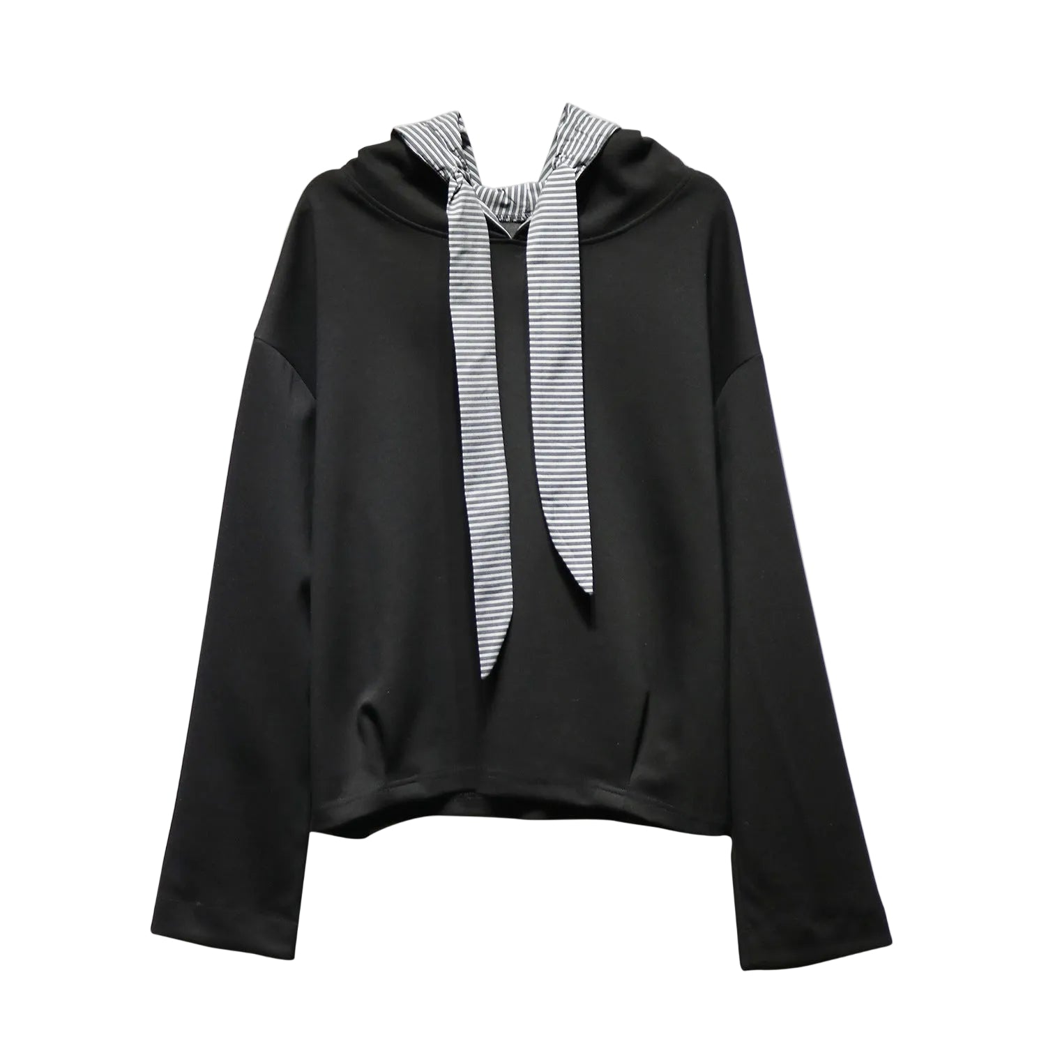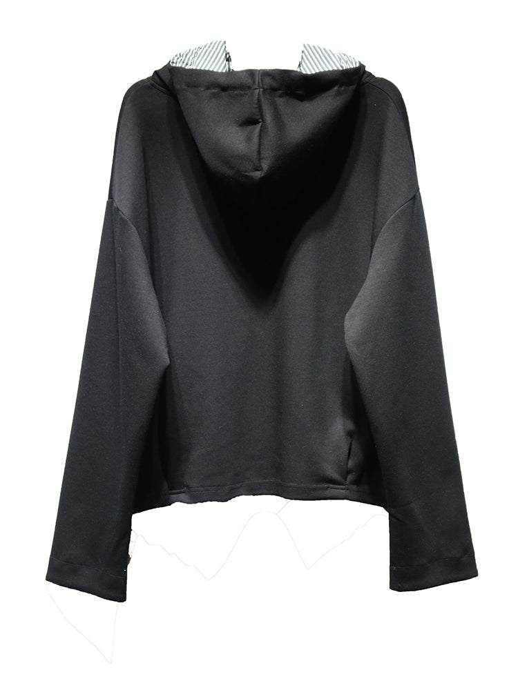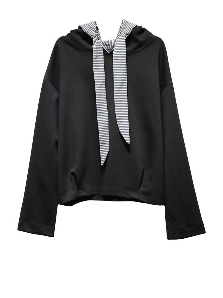 Crafted with smooth breathable fabric, this piece delivers a light, comfortable feel throughout the day. The hooded neckline with striped drawstring detail adds a distinctive touch, transforming a simple top into a fashion-forward urban essential.