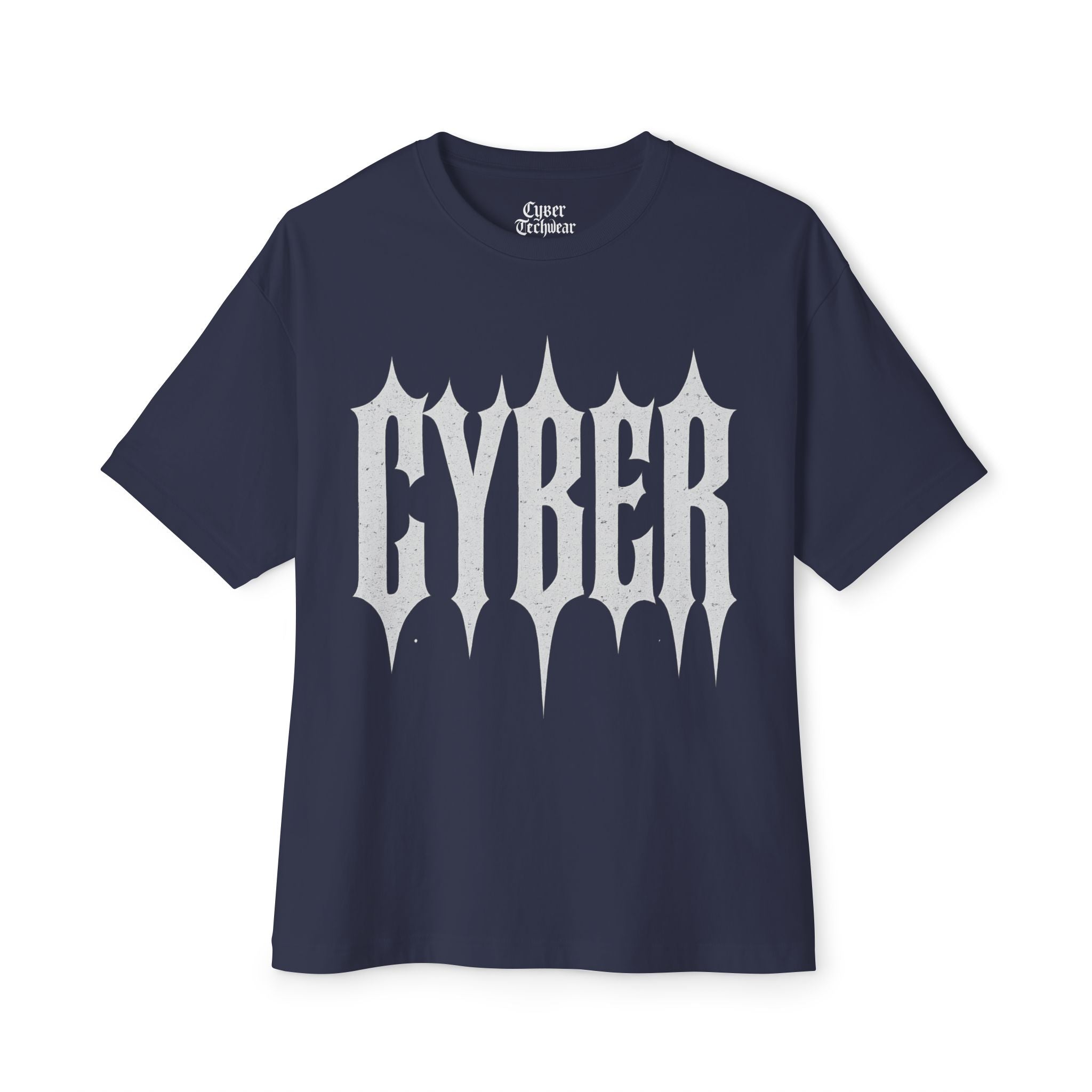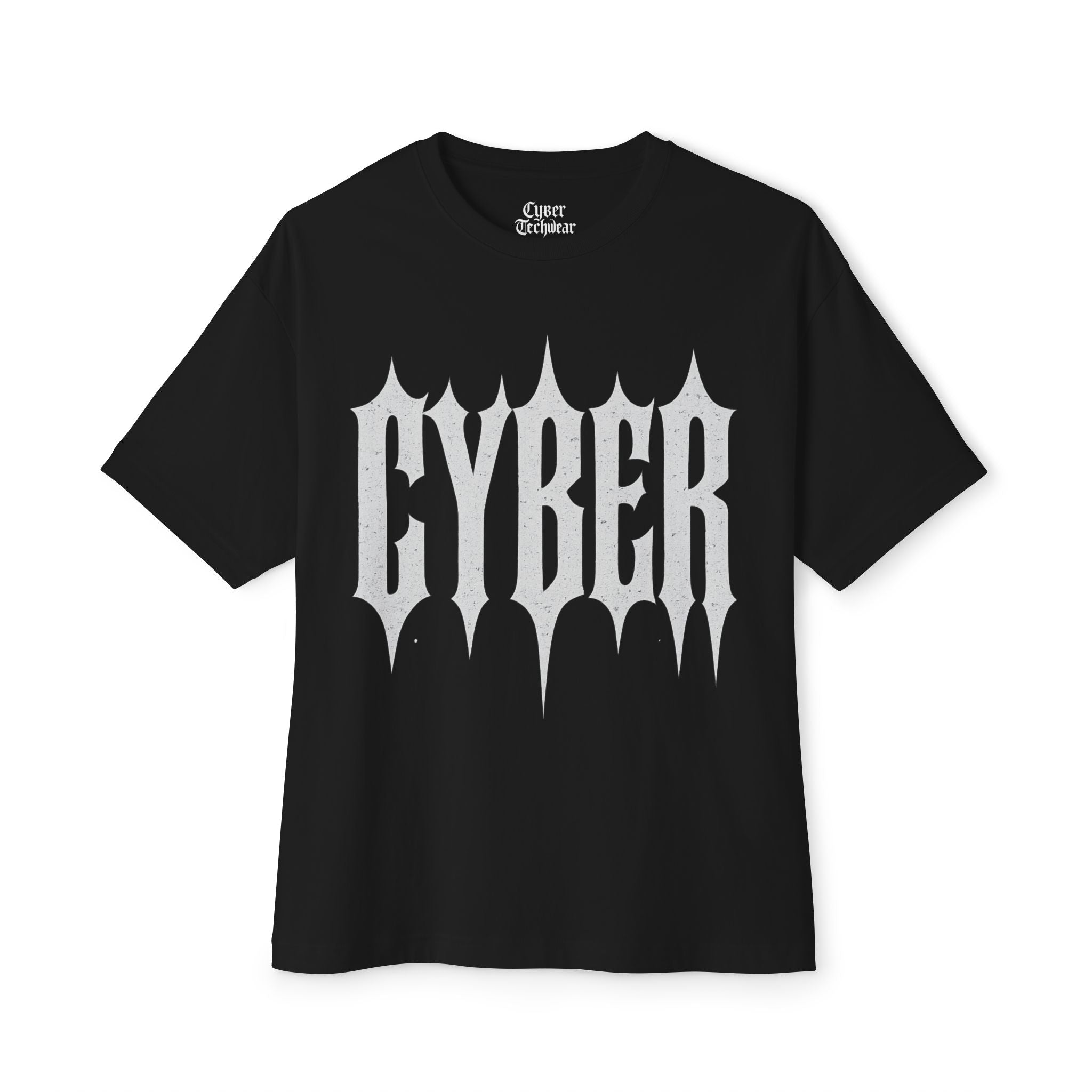 A roomy, boxy tee with a sharp cyber-goth edge. The bold, spiked “CYBER” motif sits high on a relaxed silhouette, blending streetwear attitude with lightweight comfort. Wear it oversized over layers, with cargo pants, or under an open jacket — it brings a moody, futuristic vibe without fuss. The fabric feels soft against skin and drapes with an intentional, dropped-shoulder slouch that reads modern and effortless. This is for nights at neon-lit shows, long city walks, and days when you want your outfit to say something loud and clear.