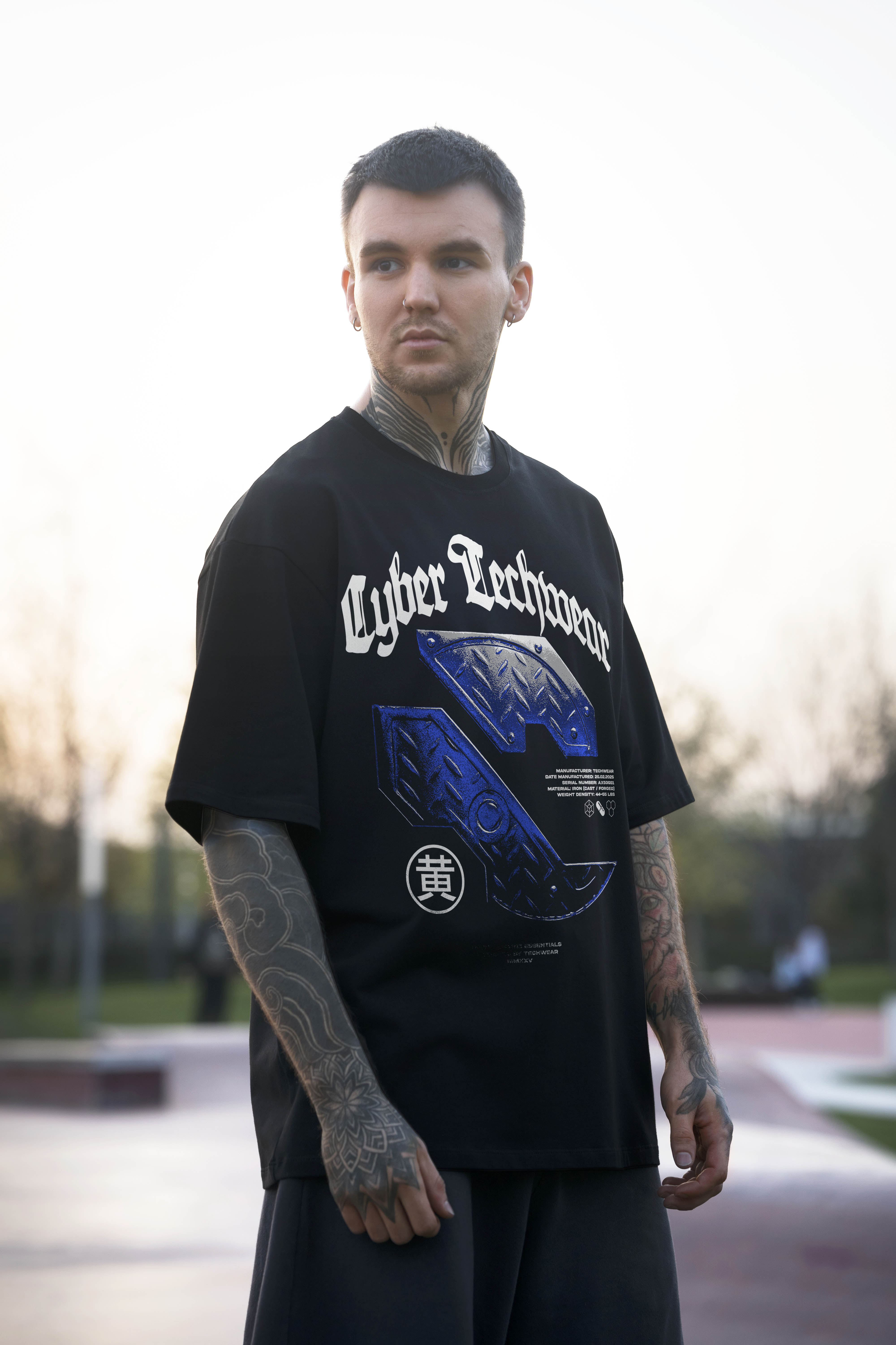 The oversized cut keeps your motion unrestricted while the black-on-black tech aesthetic adds instant street credibility. It’s more than a shirt — it’s an attitude.