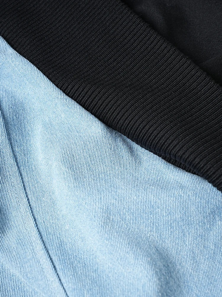 Featuring an eye-catching spliced denim design, this jacket blends contrast textures for a fresh, urban look. The lightweight fabric makes it the perfect layering piece for breezy spring days, ensuring both comfort and effortless style. 🌿