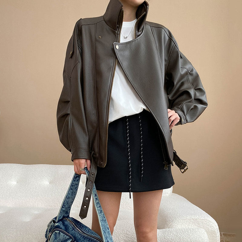 Crafted from premium PU leather, this jacket offers a sleek and polished look while ensuring a soft and comfortable fit. The unique double-neck design adds an edgy, contemporary twist, making it perfect for both casual outings and evening events. ✨