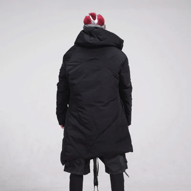 Stay ahead of the curve with the Black Puffer Jacket Black, a perfect blend of style and functionality. This jacket features a bold, futuristic design with an oversized hood and an asymmetric zip closure, making it the ultimate choice for techwear enthusiasts.