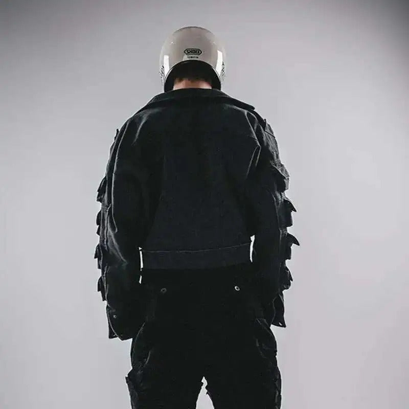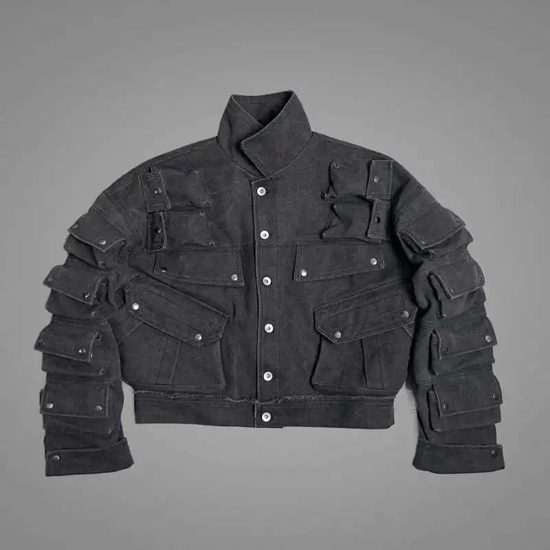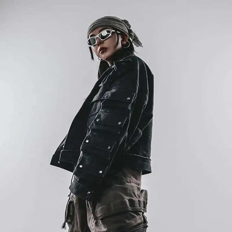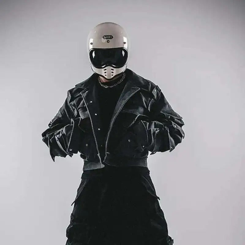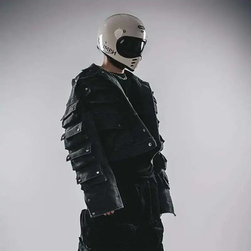 TheBlack Cyberpunk Design Jacket is crafted for those who seek bold style and rugged functionality. Designed with a sleek, structured fit and premium materials, this jacket delivers maximum durability and timeless appeal. Its utility-inspired design features secure pockets and robust details, making it perfect for the road or the streets.