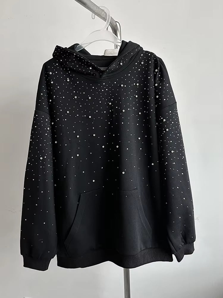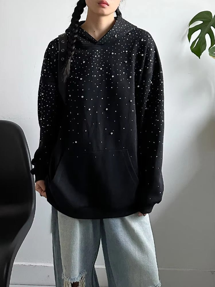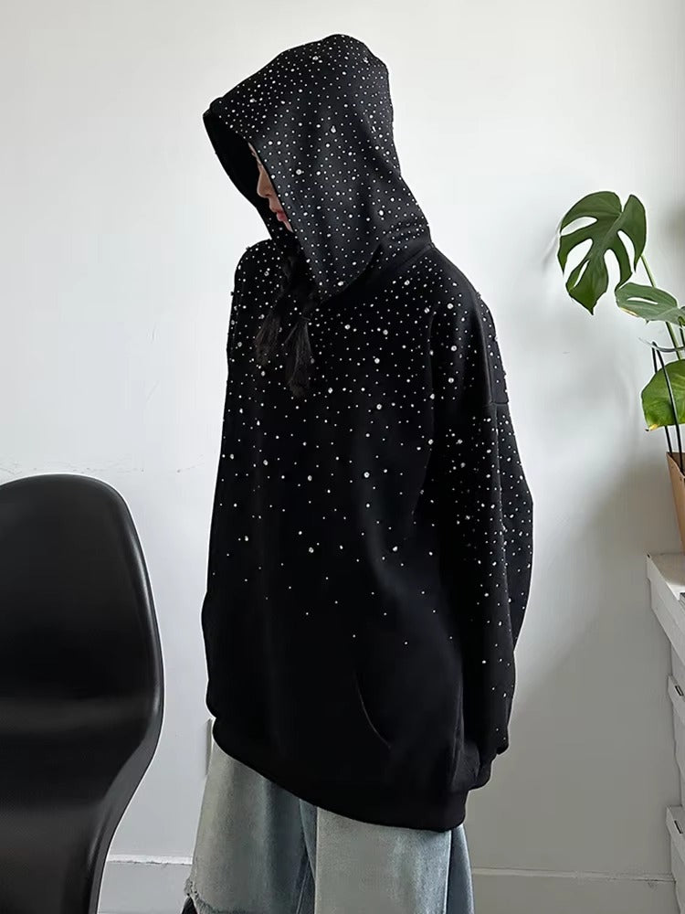 The Black Rhinestones Shining Thick Hoodie is crafted for those who love to blend luxury and streetwear attitude. Every shimmering detail of its rhinestone design catches the light, giving you that subtle yet bold glow that commands attention.