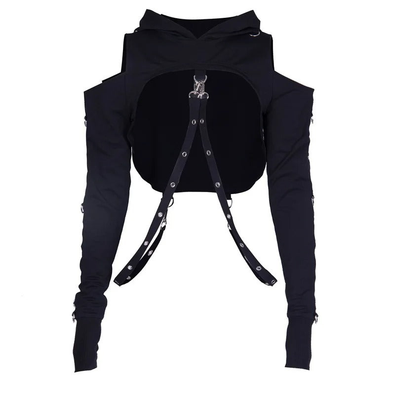 Black Crop Top Hoodie | CYBER TECHWEAR® – Cyber Techwear Skip to content