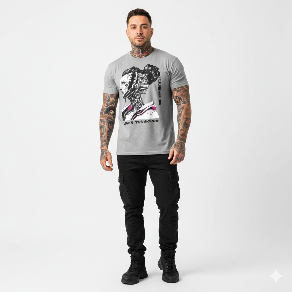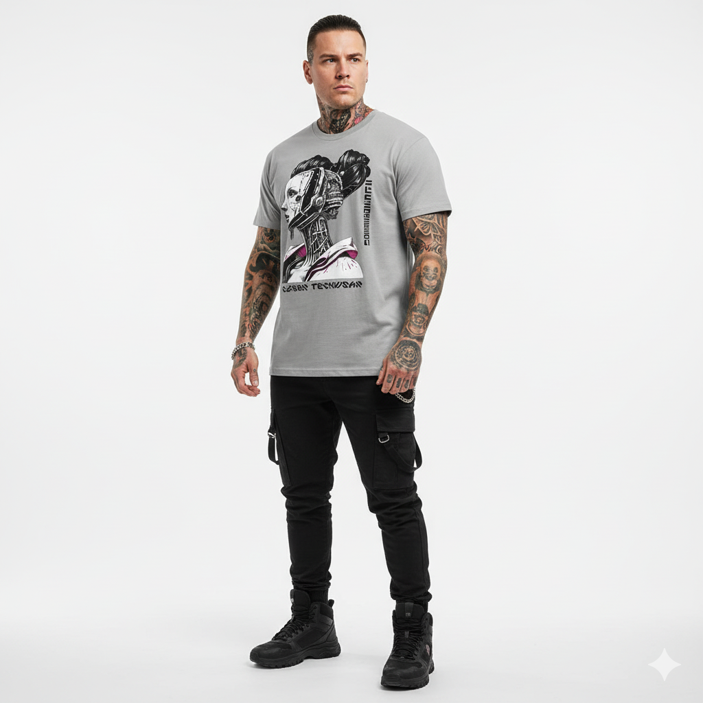 The Cyberpunk Shirt Cyborg is the ultimate expression of technological sophistication. With a unique design featuring a female cyborg, this gray t-shirt from cybertechwear is the perfect choice for anyone who loves the fusion of technology and style. Our talented artists have created an exclusive design that is both edgy and modern, making this shirt the perfect choice for anyone who loves cyberpunk culture, anime, and alternative fashion. Made from high-quality materials, this shirt is both comfortable and durable, making it the perfect choice for any occasion. Whether you're attending a convention, hanging out with friends, or just running errands, this shirt is sure to keep you looking stylish and feeling comfortable all day long. So why wait? Grab your Cyberpunk Shirt Cyborg today and start making a statement!