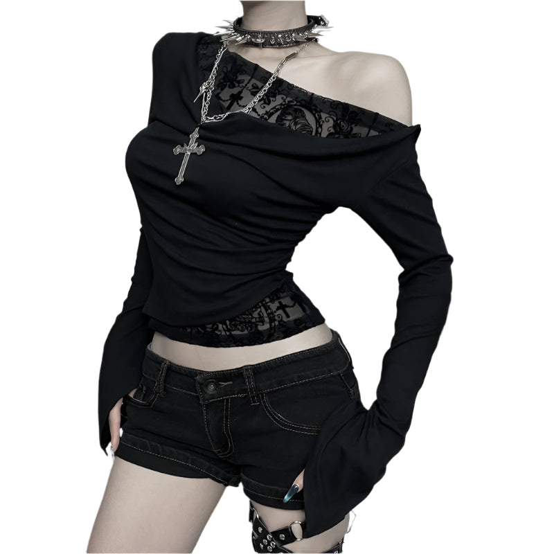 Transform your look with the stunning Oblique Shoulder Black Top — a perfect blend of gothic elegance and classic style. This piece, designed for autumn and winter, features a chic skew collar and asymmetrical details that will make you stand out. 🖤✨