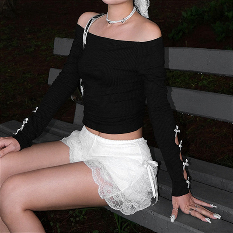 Designed with a slash neck and adorned with a delicate bow decoration, this piece is both playful and sophisticated. The knitted fabric offers a comfortable, slight stretch, ensuring a flattering slim fit for all body types. 🌟
