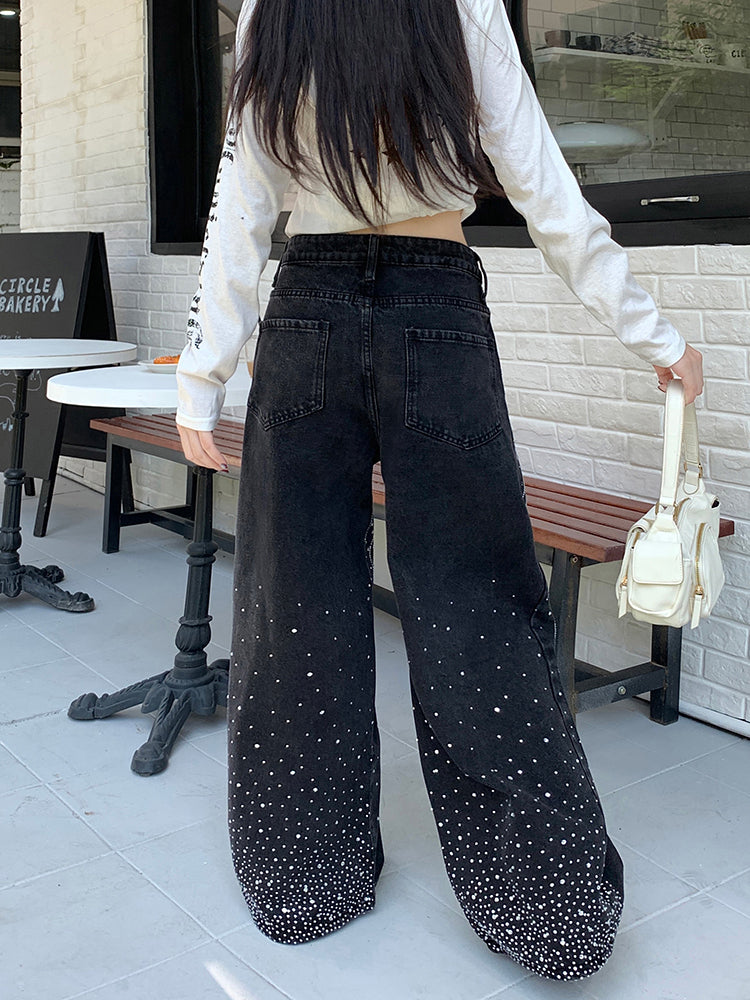 Step into the spotlight with these Jeans Pants Baggy, designed to make every move feel bold and free. Their luxurious rhinestone detailing catches the light beautifully, creating a mesmerizing, radiant effect that transforms your everyday look into something unforgettable.
