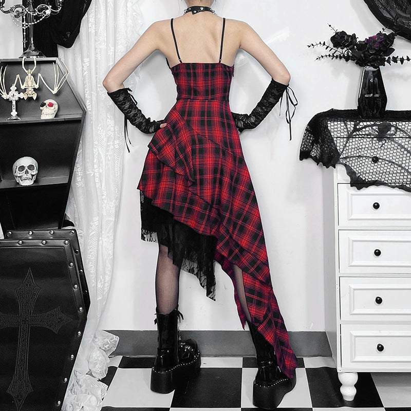 Delicate lace trim softens the punk-inspired pattern, while the fitted bodice enhances your natural curves with confidence. The Patchwork Red Black Goth Dress wraps you in attitude and allure—perfect for nights when you want to stand out effortlessly.