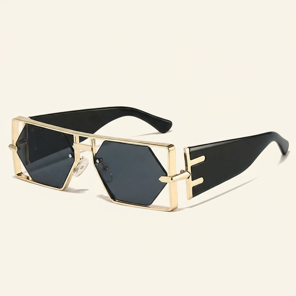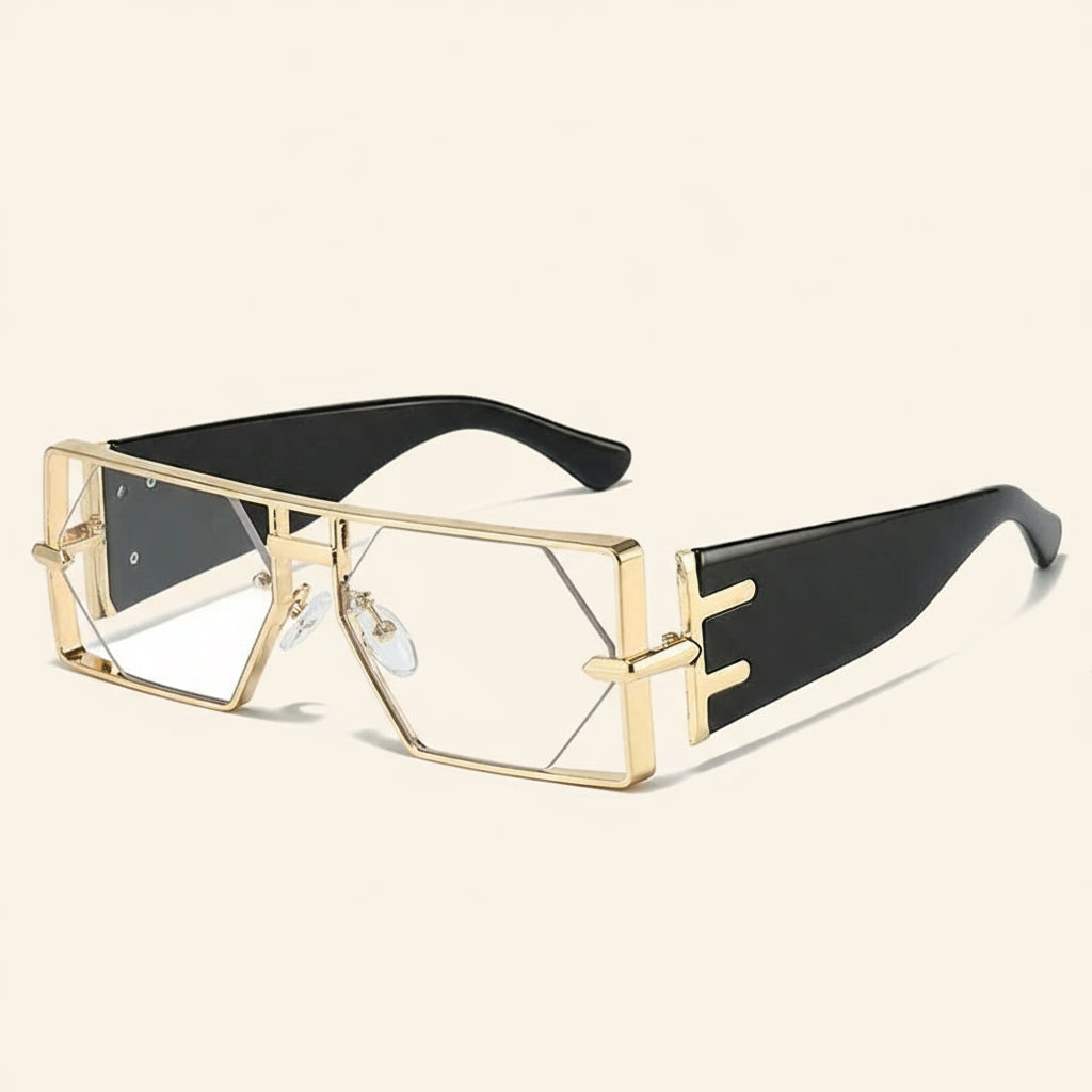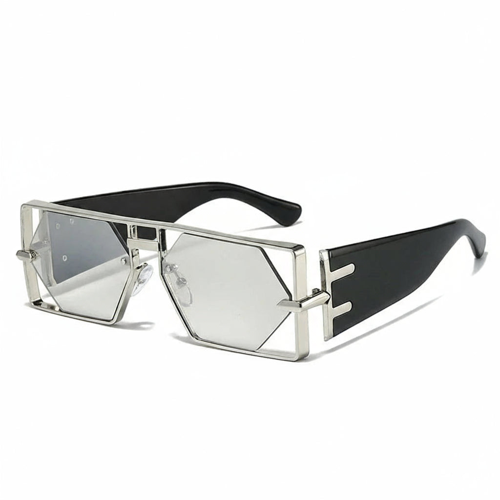 Each frame is sculpted with precision-engineered geometric edges that draw attention instantly. The sleek metallic finish paired with wide temples creates a sharp, confident profile that speaks of modern rebellion and refined taste.