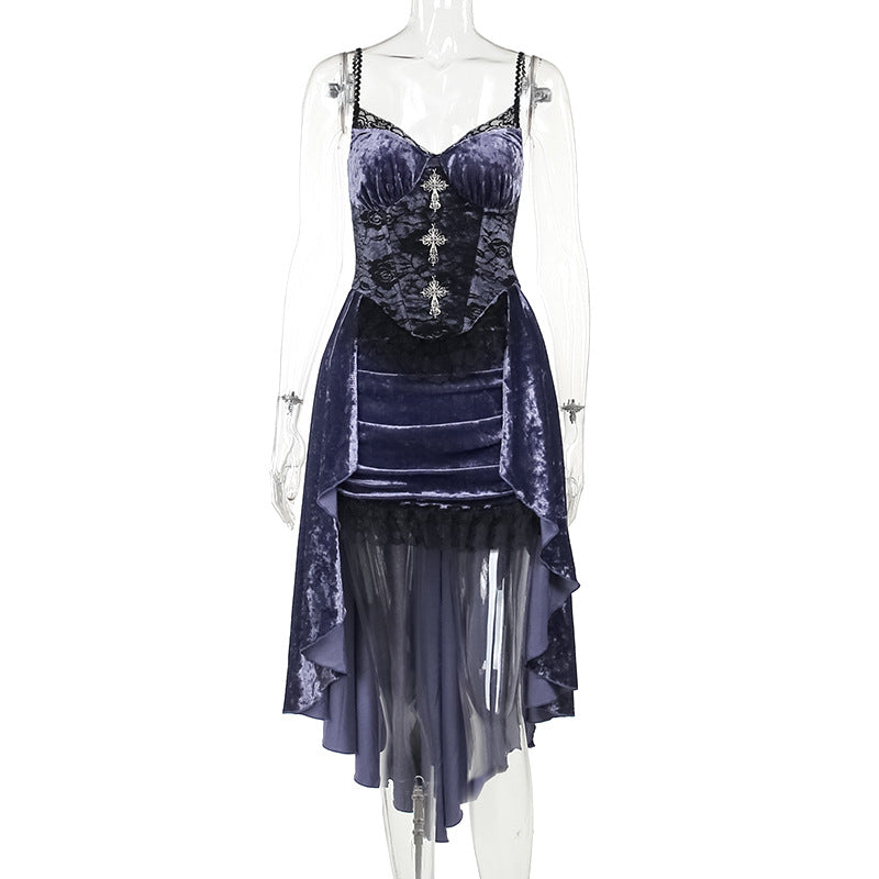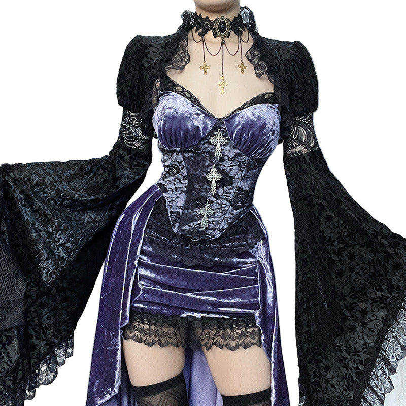 Designed to make you feel irresistibly confident, this piece wraps your silhouette in luxurious purple velvet and intricate Victorian-inspired detailing. Every movement feels elevated, as the dress naturally enhances your presence with its rich texture and exquisite lace accents.