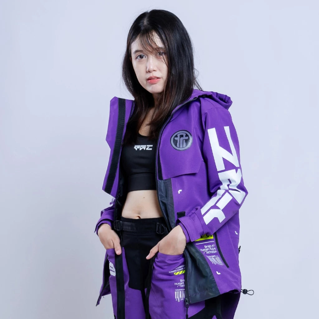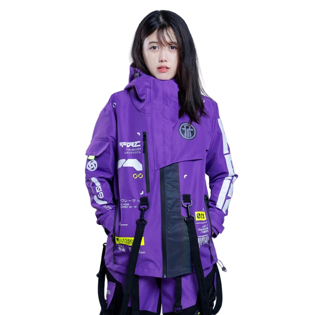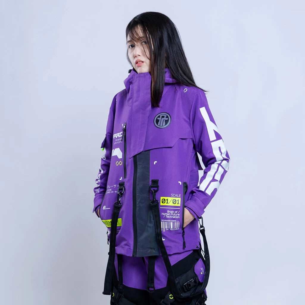 Made from Taslan Milky & hologram reflective fabric, this jacket isn’t just waterproof — it’s a statement. With bold graphic overlays, a rich purple hue, and neon contrast details, you're not just wearing a jacket — you're activating your identity.