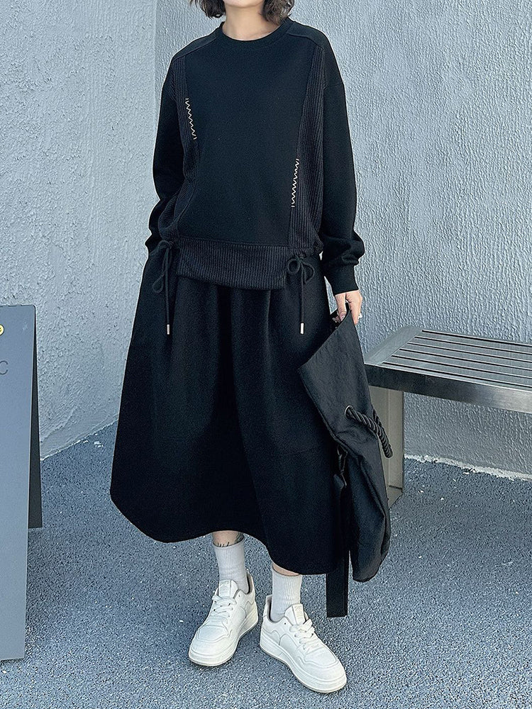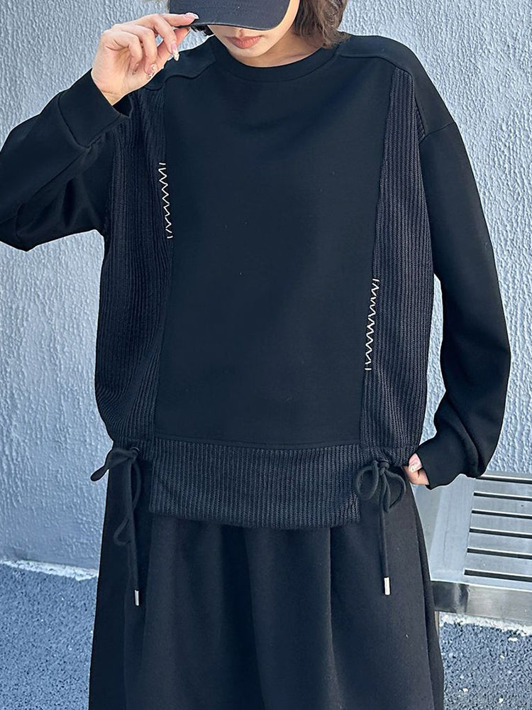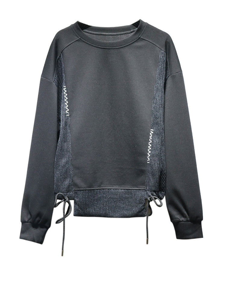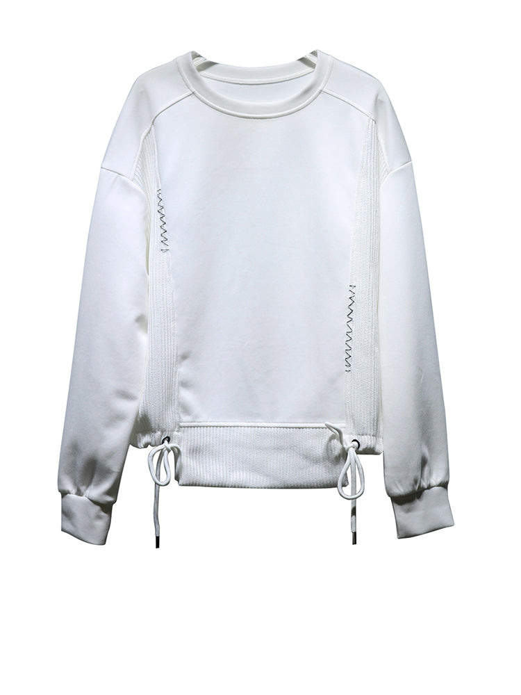 A drawstring-adjustable hem lets you personalize the shape — loose for casual flow or cinched for a structured finish. Paired with a classic crew neckline, the sweatshirt drapes comfortably while maintaining a polished appearance.