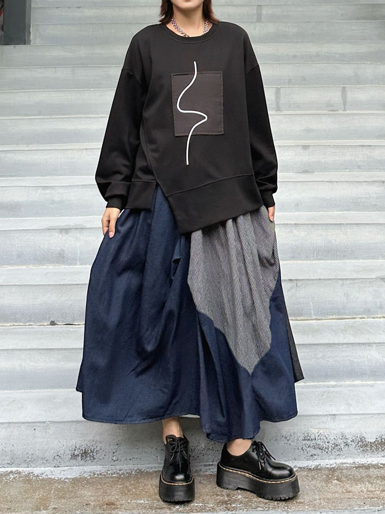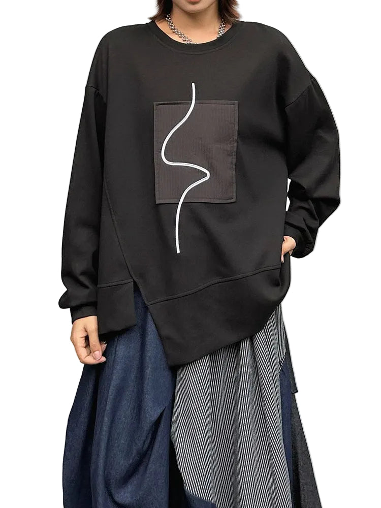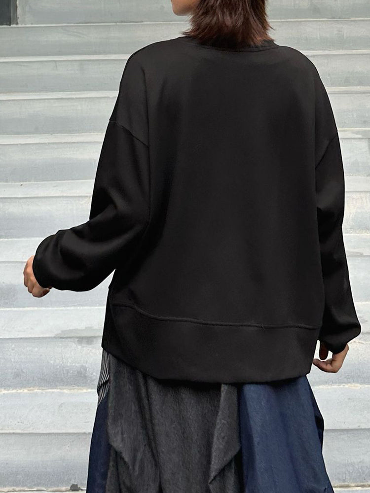 Crafted in a versatile deep black tone, this piece delivers a relaxed oversized fit that moves naturally with you. The asymmetrical hemline and subtle seam construction add dimension, transforming a simple sweatshirt into a standout essential.