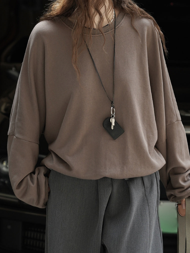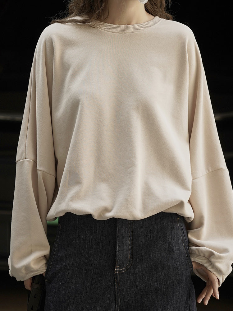 Featuring a classic crew neckline and voluminous long sleeves, it balances structure with softness. The ribbed cuffs and hem provide gentle shape retention while maintaining a relaxed feel.