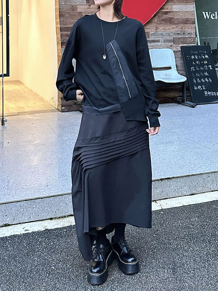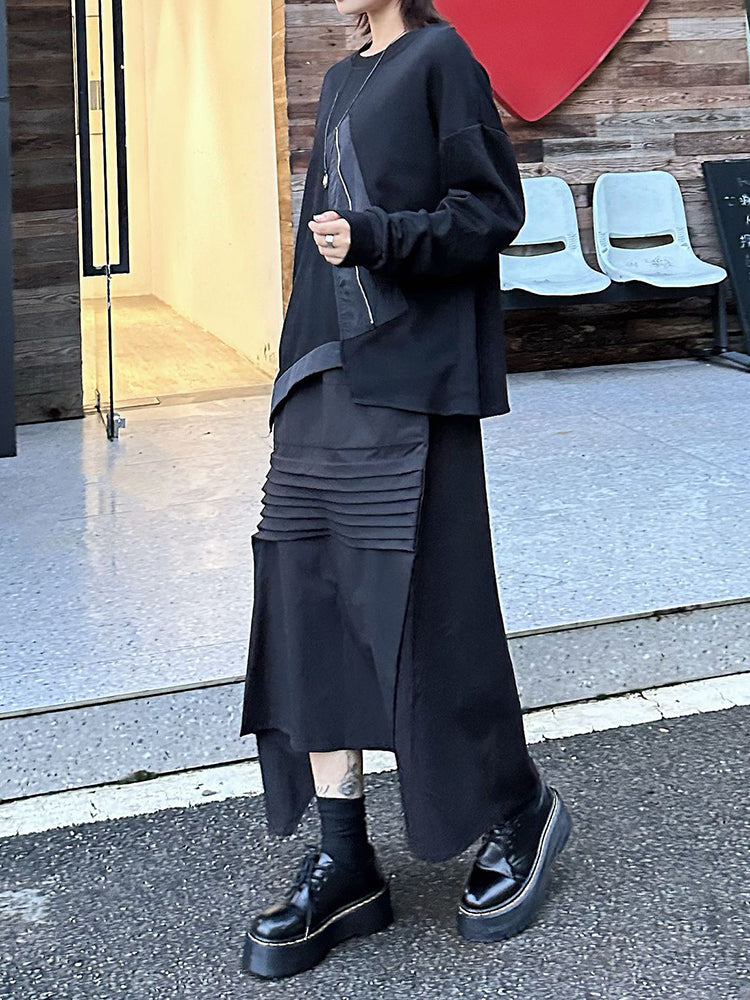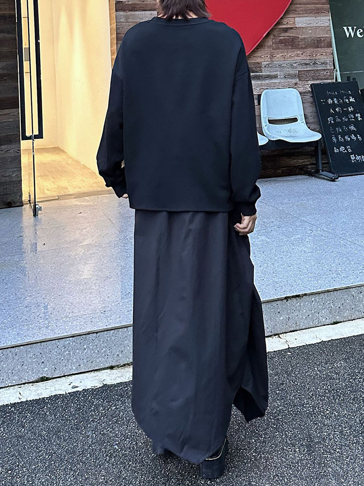 The classic crew neckline and long relaxed sleeves offer timeless versatility you can style effortlessly. Its clean black colorway pairs seamlessly with skirts, tailored pants, or layered streetwear looks.