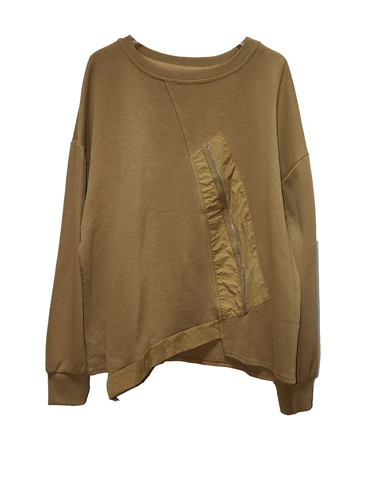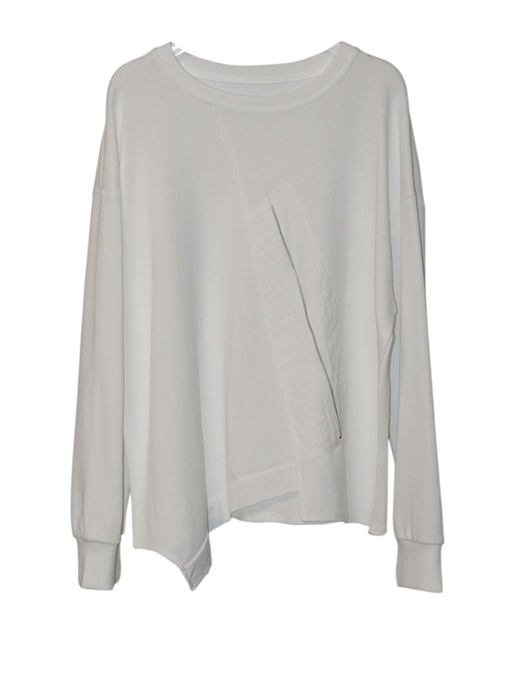 A distinctive asymmetric front panel with a subtle decorative zipper accent creates visual depth without overpowering the design. The smooth structured fabric holds its shape beautifully, giving you a polished finish while staying comfortable all day.