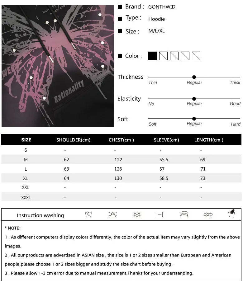 Step into a retro-futuristic world with the Butterfly Graphic Y2K hoodie. This hoodie blends early 2000s nostalgia with a fresh modern edge, perfect for those who love bold and unique fashion. The stunning butterfly print adds a soft yet edgy touch, making it a must-have for your streetwear wardrobe.