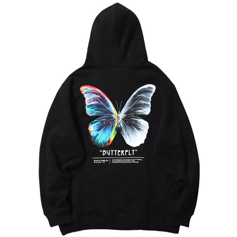 This hoodie is the perfect fusion of soft fleece warmth and bold Y2K style. Designed for those who embrace retro-futuristic fashion, it features a unique butterfly print that symbolizes transformation and freedom.