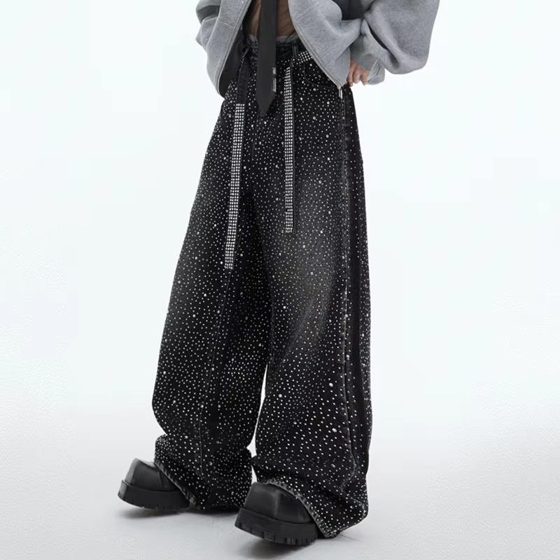 Step into the future of streetwear with the Diamond Ribbon Baggy Y2K Jeans. A perfect fusion of **Y2K nostalgia** and **modern edge**, these jeans feature **ribbon lace-up detailing** and **a relaxed baggy fit** that make them an instant standout.