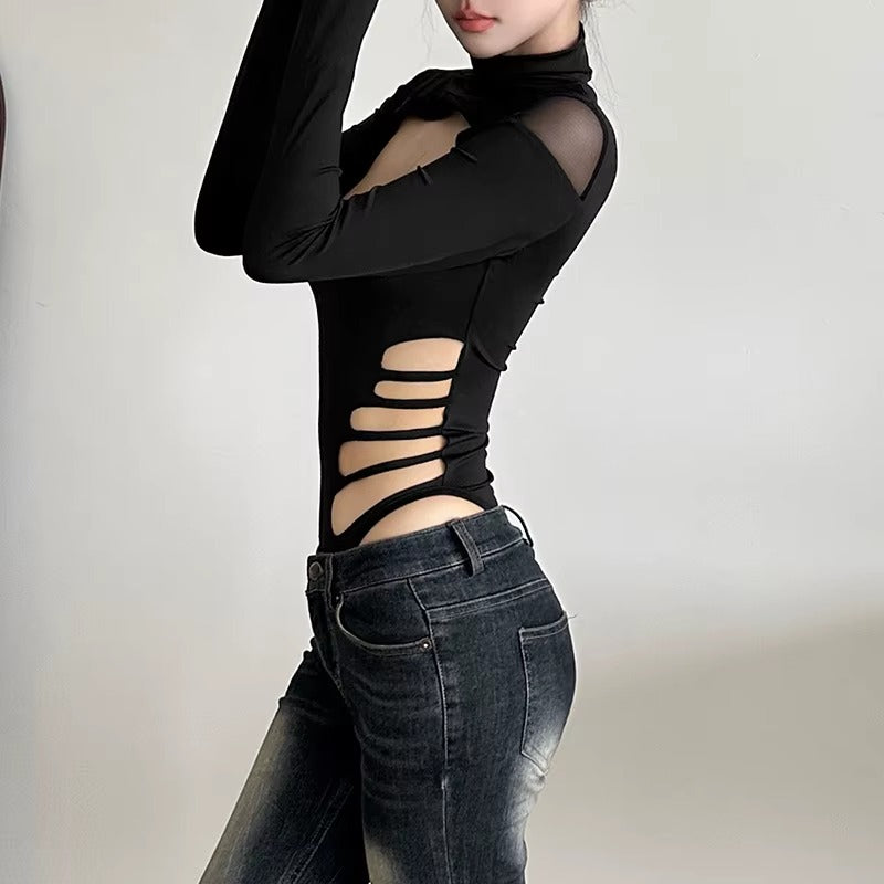 Unveil your bold style with the Women Y2K Cut Out Bodysuit! Designed for the fashion-forward, this bodysuit showcases striking cut-out details and a sophisticated mesh design that enhances your silhouette. Perfect for a night out or any occasion where you want to stand out. ✨