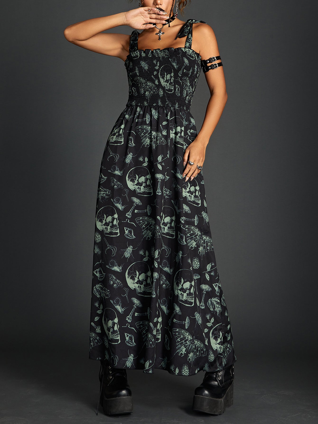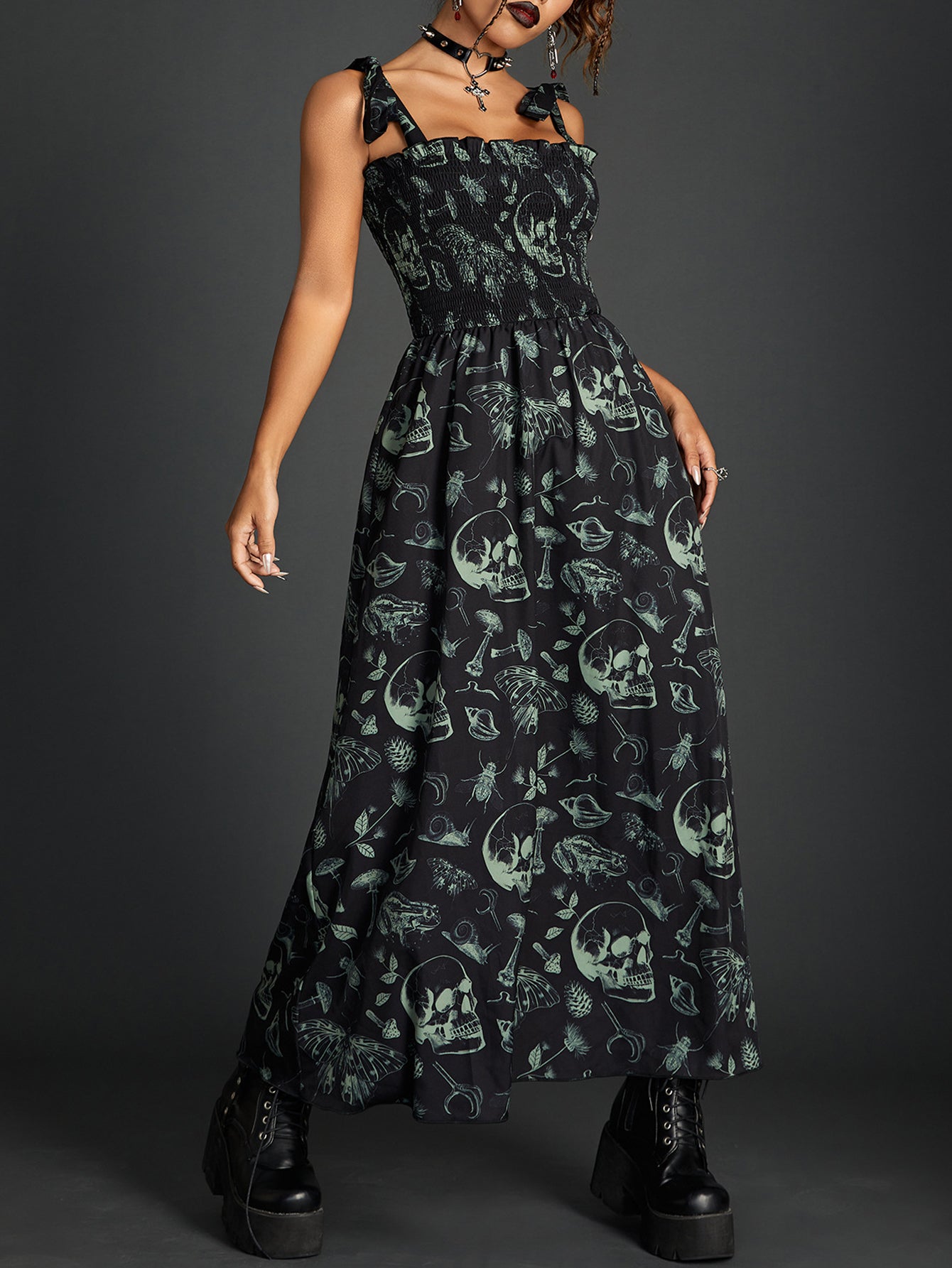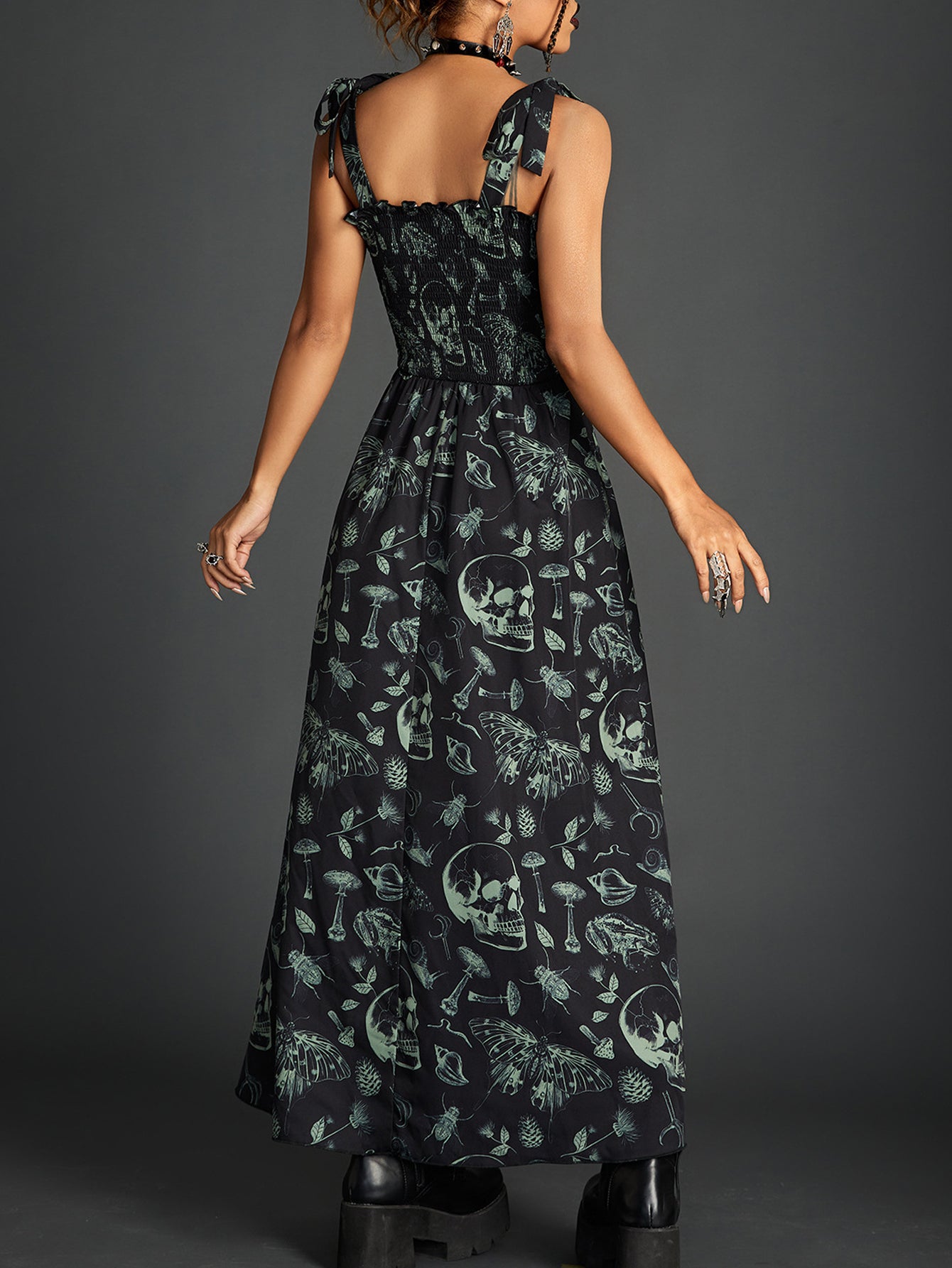Step into a world of dark enchantment with a silhouette designed to feel both mystical and effortlessly stylish. The hypnotic occult-inspired print instantly draws attention, blending skulls, symbols, and botanical elements into a visually striking pattern.