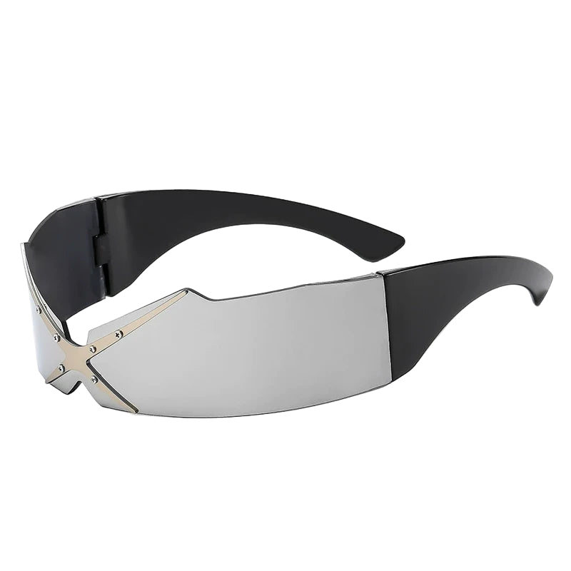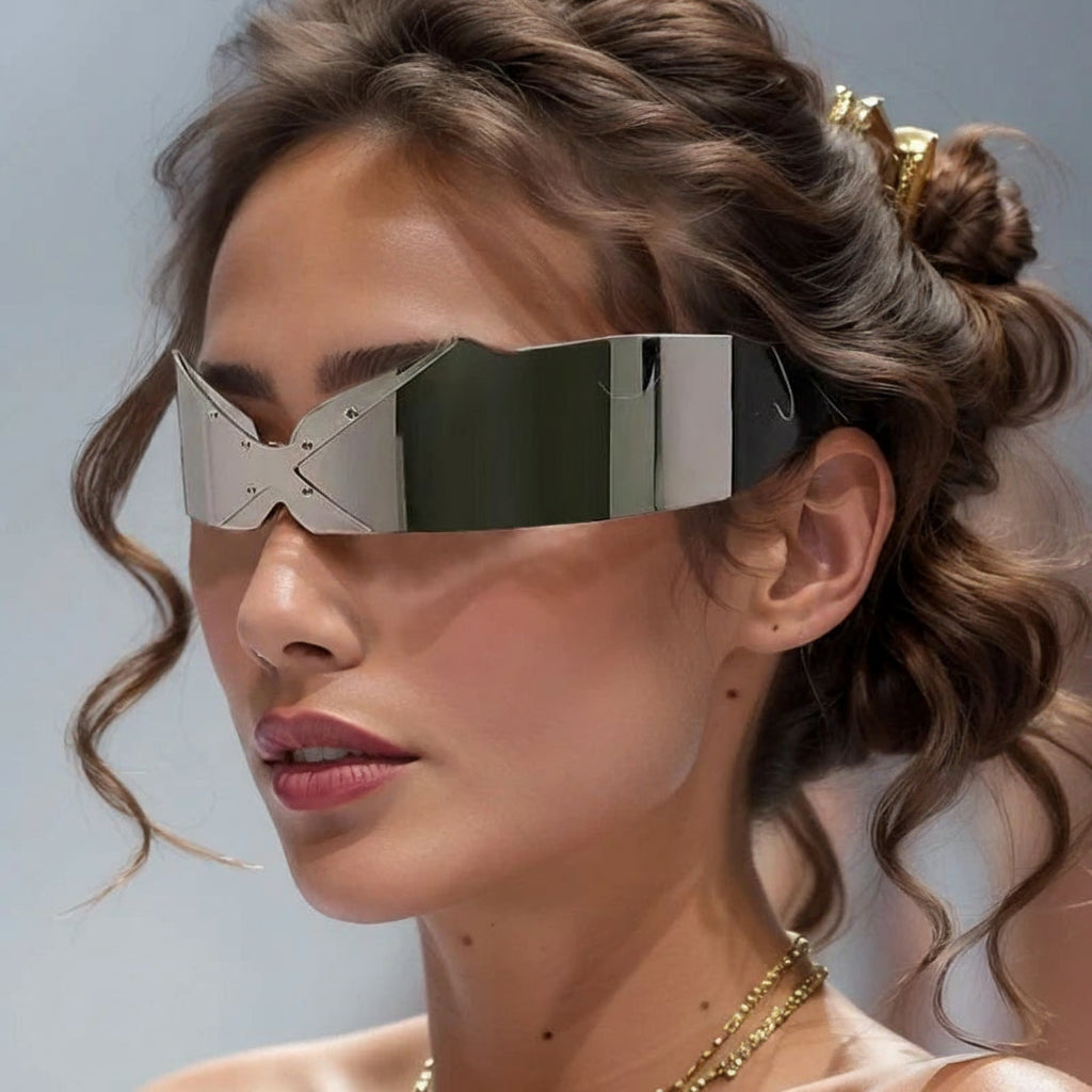 The distinctive metal X-frame accent and wraparound mirrored lens create a bold, futuristic silhouette that elevates any outfit. Every glance becomes a statement — powerful, magnetic, and unapologetically original.