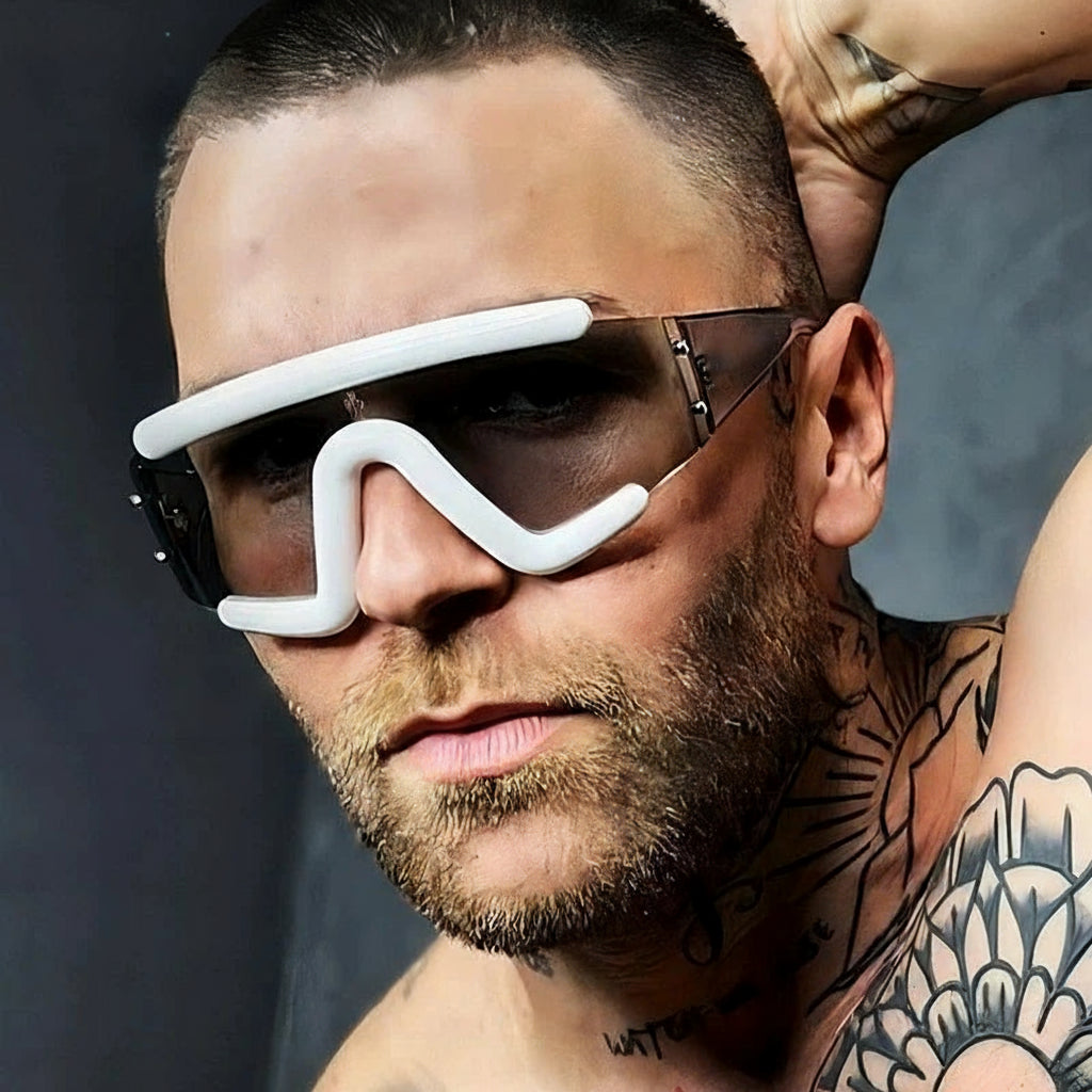 With their one-piece lens construction and sculpted geometric frame, these sunglasses redefine contemporary streetwear. Every curve, every edge is made to capture light, movement, and attention — turning a simple accessory into a statement of individuality.