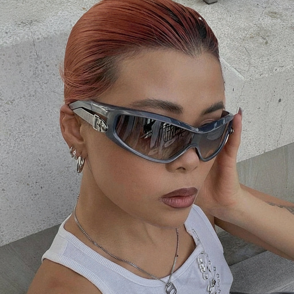 The aerodynamic frame hugs your face perfectly, giving you a bold streetwear aesthetic while protecting your eyes in style. Whether you're walking the city streets or striking a pose for your socials, these sunglasses are your ticket to next-generation fashion.