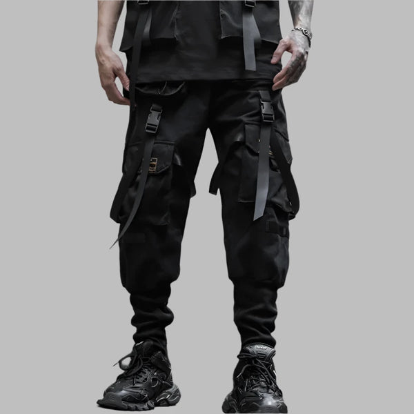 Pantalones cargo negros con múltiples bolsillos – Cyber Techwear Ir directamente al contenido