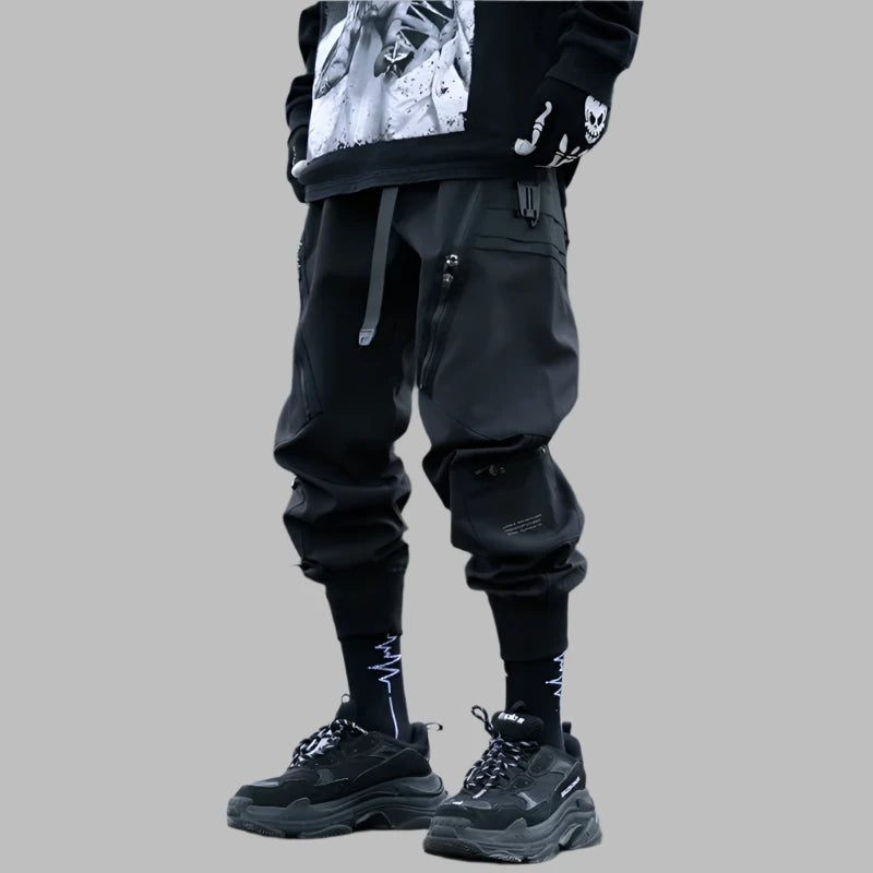 Pantalón negro estilo punk con múltiples bolsillos – Cyber Techwear Ir directamente al contenido