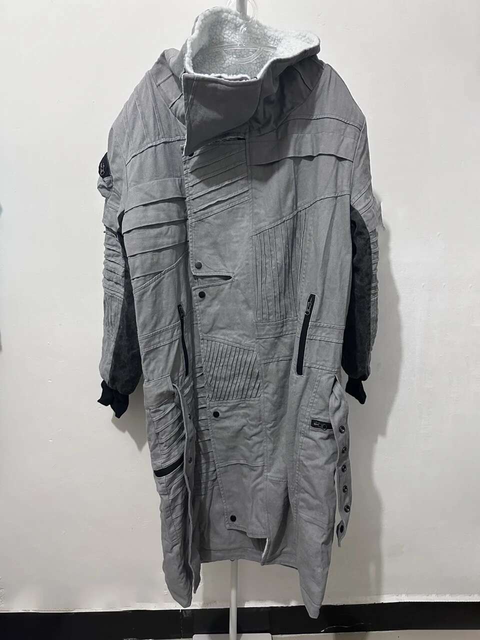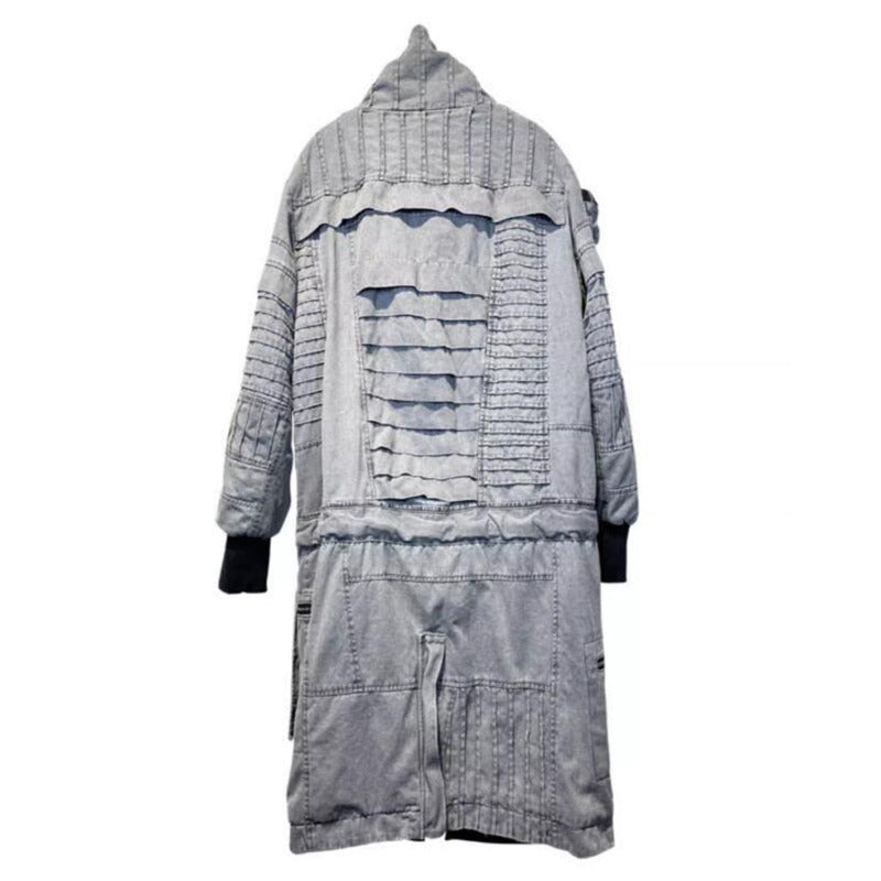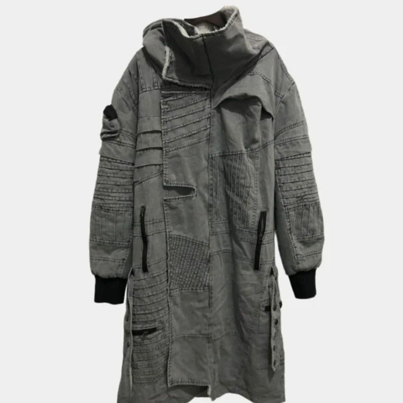 Adopta una estética audaz y vanguardista con la chaqueta larga patchwork cyberpunk . Diseñada para quienes se salen de lo común, esta prenda combina una confección innovadora con un diseño futurista para realzar tu estilo.