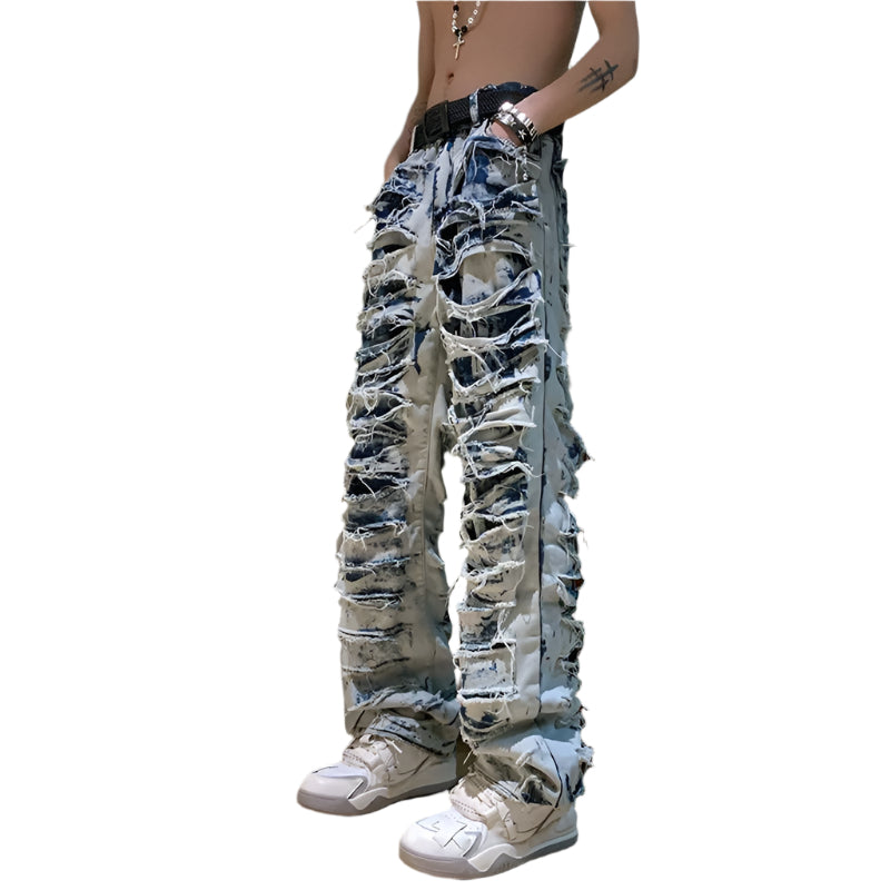 Libera tu lado atrevido con los pantalones cyberpunk de mezclilla dañada 💥